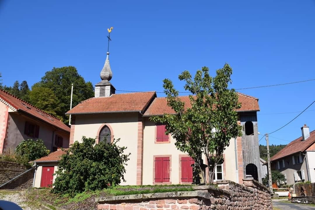 Vista dominante sobre el valle de la Plaine, en el borde del bosque en un terreno de 2 ha, hermosa naturaleza, calma absoluta. Ideal para reponer energías. El pueblo de Allarmont se encuentra más abajo a 5 minutos a pie. Hay una panadería y 2 tiendas de comestibles, tabaco y combustible.