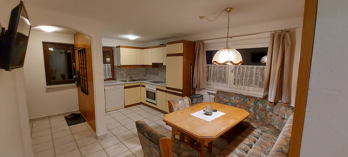 Vacaciones en los Alpes Nuestro apartamento de vacaciones recientemente renovado en las montañas (a 1000 m sobre el nivel del mar) A.) ofrece a todos un alojamiento cálido y decorado con mucha atención al detalle a un precio razonable. En la misma casa hay otro apartamento completamente separado que también se puede alquilar. El apartamento en sí es difícil de ver desde el exterior. Las vistas de las montañas suizas son fantásticas. Disfrute de la puesta de sol o de una película en el proyector.