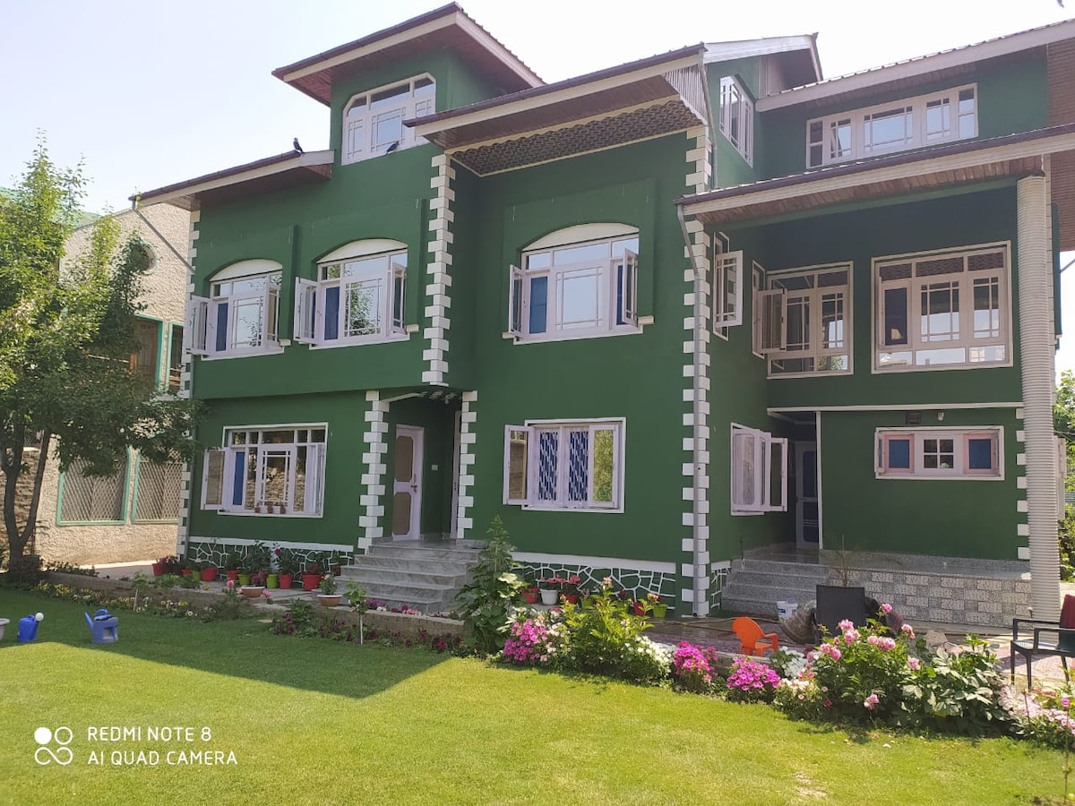 Relájate con toda la familia en este lugar tranquilo para hospedarte. Este alojamiento está diseñado para tu lujo y comodidad y para ofrecerte una experiencia única en el valle de Cachemira. Tenemos un total de 3 dormitorios principales y una habitación más pequeña. Las 3 habitaciones principales tienen baños adjuntos. También puedes acceder a la cocina, al salón, al comedor y al comedor al aire libre. Nuestro alojamiento se encuentra cerca de los legendarios jardines de Nishat y rodeado de montañas y exuberante vegetación.