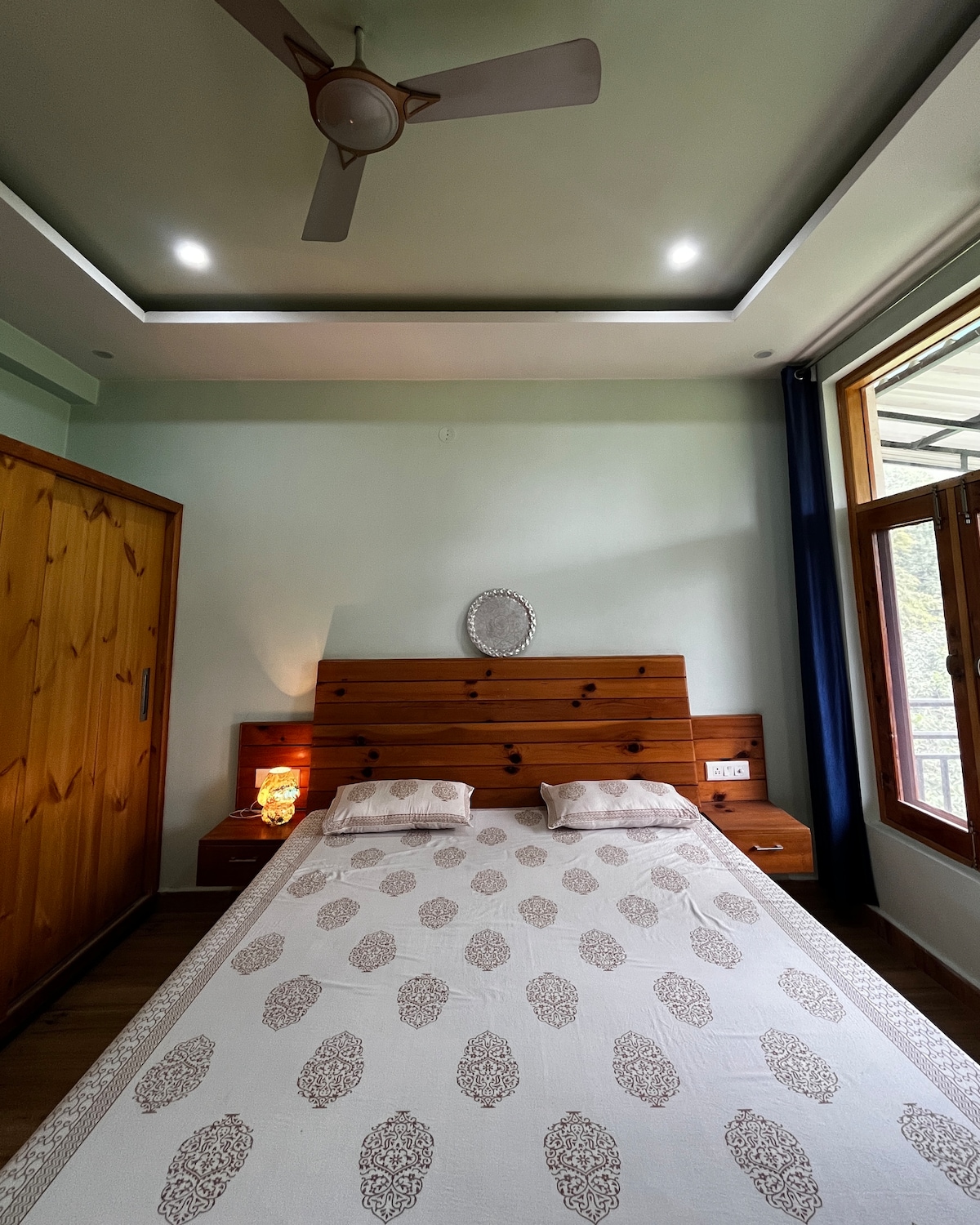 Esta es nuestra casa de campo de 3 BHK con 3 dormitorios junto con baños adjuntos y TV LED con plato en todas las habitaciones . Dos dormitorios están en la planta baja y uno en el entrepiso (entre la planta baja y el primer piso). La cabaña tiene una cocina privada con comedor , hermosa y acogedora sala de estar, sala de estar privada al aire libre y terraza común en el segundo piso con vistas a la montaña. Cuenta con plaza de aparcamiento justo fuera de la cabaña en el local.