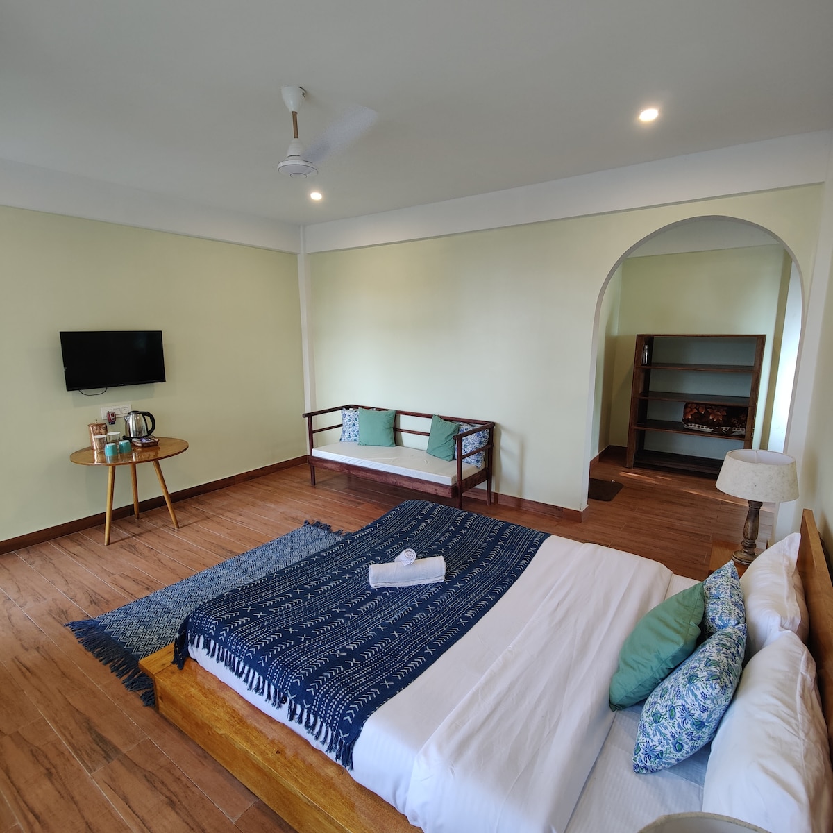 We are supremely positioned: a 7-min ride from Bagdogra Airport, 11 mins from NJP Station, and 20 mins from the Bus Terminus. 24/7 transport via the Main Highway, a 3-min stroll. Amenities: Two 7ft×6ft king beds, 70% blackout curtains, moody lighting, 60mbps Wi-Fi, fully appointed kitchen, 2 western loos, and a workstation. Valid ID (Local ID accepted). Early/late check-in/out: ₹200 per hour. No visitors allowed on the property. 24/7 backup powers basic lights, AC and fancy lights excluded.