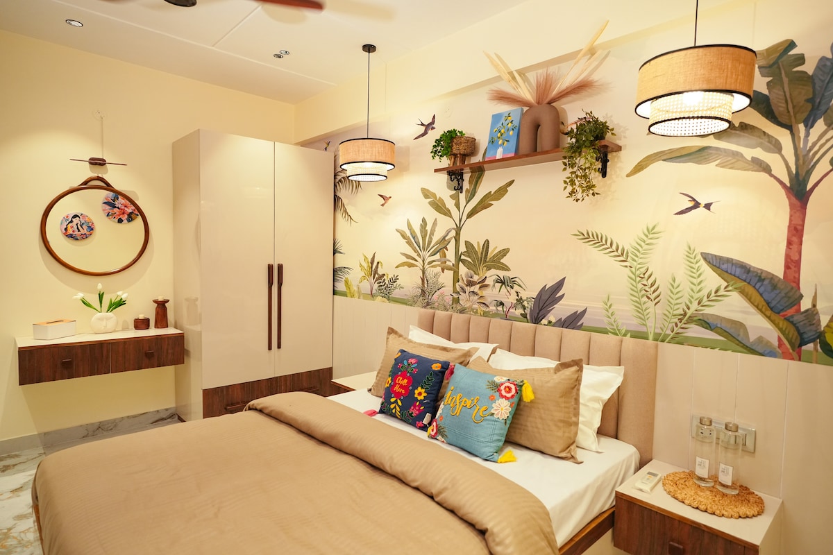 ¡Bienvenido a nuestro acogedor y cuidadosamente diseñado apartamento de 3 habitaciones, perfecto para familias, grupos o trabajadores remotos! Cada dormitorio cuenta con una cómoda cama tamaño queen, ventilador de techo, armario con casillero y su propio ambiente único. Habitación 1: sala de entretenimiento con TV Habitación 2: la única habitación con espacio de trabajo con aire acondicionado y libros de cuentos Habitación 3: espacio recreativo para relajarse o estirarse Disfruta de una cocina funcional, wifi de alta velocidad, una zona común con inodoros indios y occidentales, baño separado con géiser y estacionamiento gratuito.