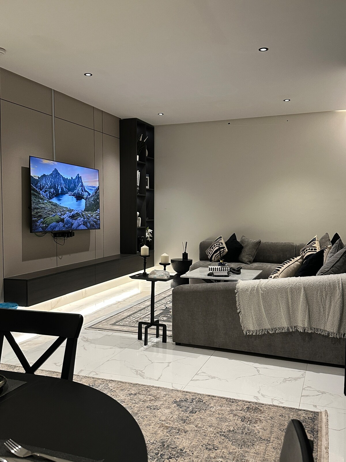 Disfruta de una estancia perfecta en un apartamento espacioso y cómodo con un dormitorio con una cama grande y elegante, un salón espacioso con una hermosa vista y una cocina totalmente equipada para una comodidad completa. El apartamento está equipado con Internet de alta velocidad, un televisor de 65 pulgadas con Netflix y suscripción a Shahid, así como una lavadora para facilitar su uso. El departamento está en un lugar tranquilo que te ofrece un ambiente relajante lejos del ruido, por lo que es la opción perfecta para familias o amigos que buscan una estancia cómoda que combine lujo y tranquilidad. Ofrecemos una cuna. Avísanos al reservar o con mucha antelación a la llegada para que podamos prepararla.