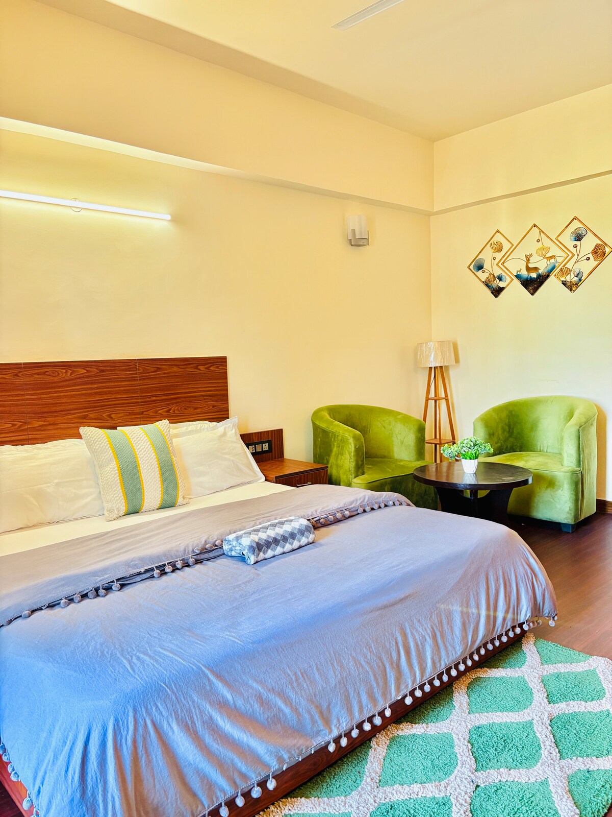 Bienvenido a Melody by AariaHomez, un impresionante apartamento de lujo familiar situado en el corazón de las montañas, perfecto para una escapada romántica o una aventura en solitario. El apartamento está a solo 10 minutos de Pacific Mall Rajpur Road y a 60 minutos de la reina de las colinas, Mussorie. - Cómoda cama tamaño king con sábanas de primera calidad. - Ofrece una pequeña cocina para tus necesidades culinarias. - Baño moderno con elementos esenciales incluidos. - Balcón privado para disfrutar del café por la mañana. - Smart TV y wifi de alta velocidad.