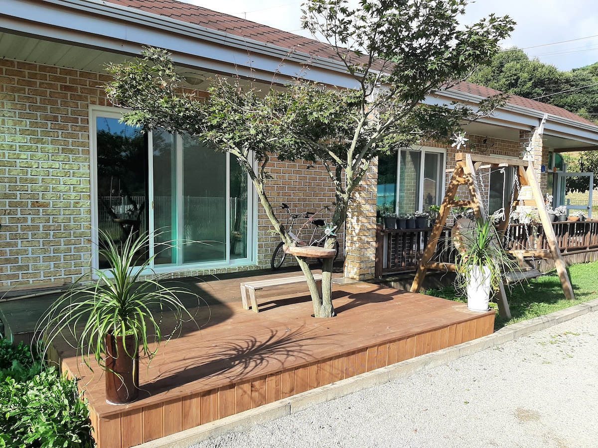 ¿Qué pasa, doc? ¡Sanar en un lugar con un hermoso jardín!~~Abril (hortensia y azalea) Mayo (jardín de rosas) Junio-Agosto (jardín de hortensias) Septiembre-Octubre (crisantemo) espacio para descansar~~!! Amor suculento en invierno también, Bawisol Garden~~!! Sashimi fresco y la experiencia favorita de los niños en el puerto de Gungpyeong, donde la puesta de sol es maravillosa, parque de atracciones del puerto de Gungpyeong Está Jebudo, donde se encuentra la carretera del mar, y el puerto de Jeongok, donde puedes disfrutar del yate. Puedes sentir la calidez de visitar la casa de una abuela en un campo tranquilo con una vista abierta.Hay una sala de juegos con un gran trampolín y un castillo inflable para que los niños puedan correr libremente, y también hay juegos de arena en el patio, y bádminton y baloncesto para adultos~ Muchas personas están satisfechas como un lugar para reuniones familiares. Puedes hacer barbacoa incluso en días lluviosos. Todo el primer piso del alojamiento es una habitación de huéspedes, y 20.000 KRW por persona adicional (incluido el número de personas que se alojan el mismo día) Se permite la entrada a personas mayores, discapacitados y niños. Hay una entrada separada de la casa del propietario, por lo que no hay invasión de la privacidad.