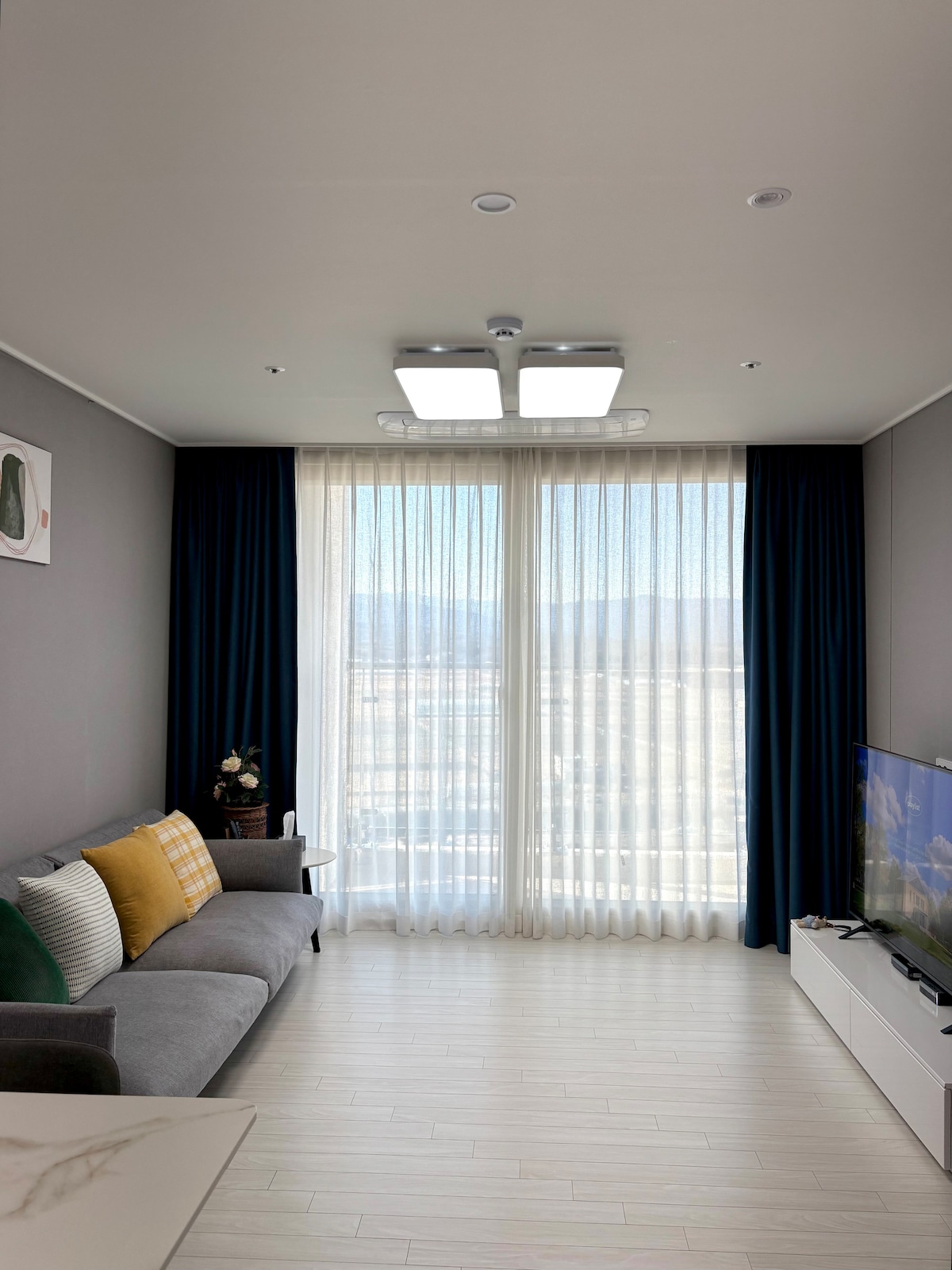 Es un edificio moderno con habitaciones en forma de casa privada en el segundo piso y tiene una zona de barbacoa al aire libre. Tiene una estructura de habitación cómoda como un hotel y un televisor QLED 4K de 65 pulgadas frente al lecho de movimiento, por lo que tiene las condiciones óptimas para ver películas. No se permite fumar en la habitación ni cocinar alimentos que desprendan humo. La barbacoa al aire libre también tiene una estructura independiente, y como es un alojamiento operado por un artista de iluminación, se pueden disfrutar de las maravillosas luces interiores y exteriores. Hay muchos lugares turísticos cercanos, como el río Hongcheon, el parque Vivaldi, el centro turístico del monte Palbong y la granja de ovejas. Es una habitación solo para dos personas y no se admiten mascotas. (Es posible hasta 3 personas, pero hay un costo adicional, por lo que debe informarnos con anticipación) Hay un total de 4 habitaciones, desde la 201 hasta la 204, que se asignan aleatoriamente en el orden de reserva. El tamaño de la habitación y las instalaciones son todos iguales, y hay una ligera diferencia en la iluminación principal. Si te gusta la comodidad, la limpieza y la modernidad, no te arrepentirás. Check-in 15:30, Check-out 11:30