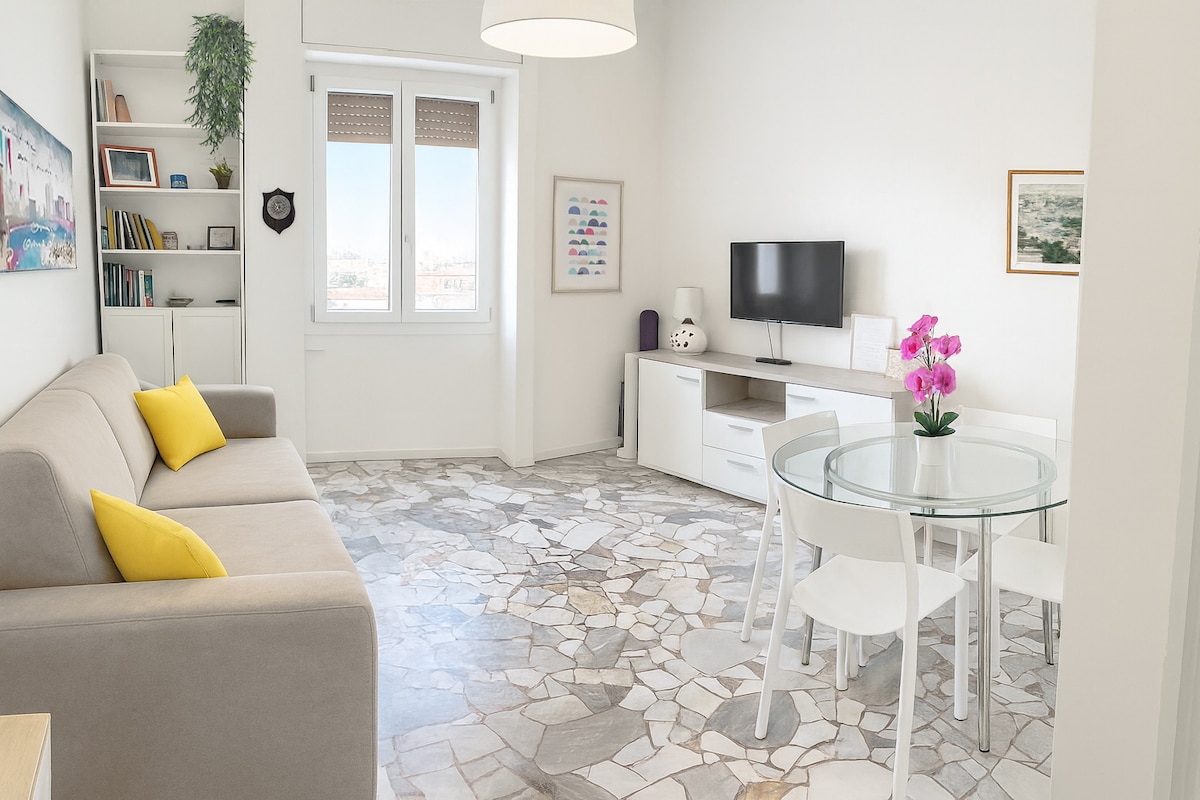 Puedes sentir las columnas romanas en tu acogedor departamento. Su posición central justo enfrente de "Colonne di San Lorenzo" te hace sentir como en casa y en el monumento del siglo III al mismo tiempo. El apartamento se ubica en uno de los barrios históricos más famosos y característicos de la ciudad.