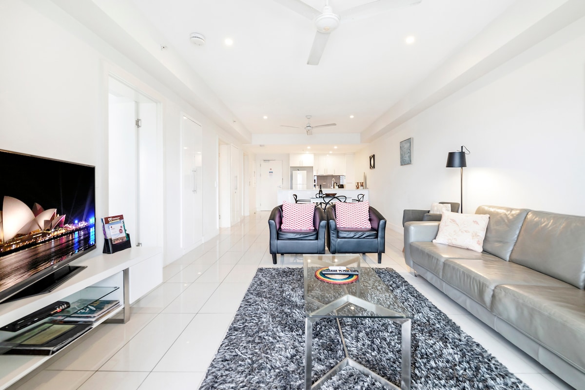 101 The Darwin is a relaxed, effortless Waterfront escape. A fully self‑contained 1‑bedroom apartment for two at the iconic Darwin Waterfront. Sink into easy living with a full kitchen, private laundry, free parking, a dedicated workspace and a spacious verandah. Steps from the sea lagoon, wave pool and vibrant dining precinct, with Stokes Hill Wharf and the city’s best cafés, bars and restaurants just a leisurely stroll away.