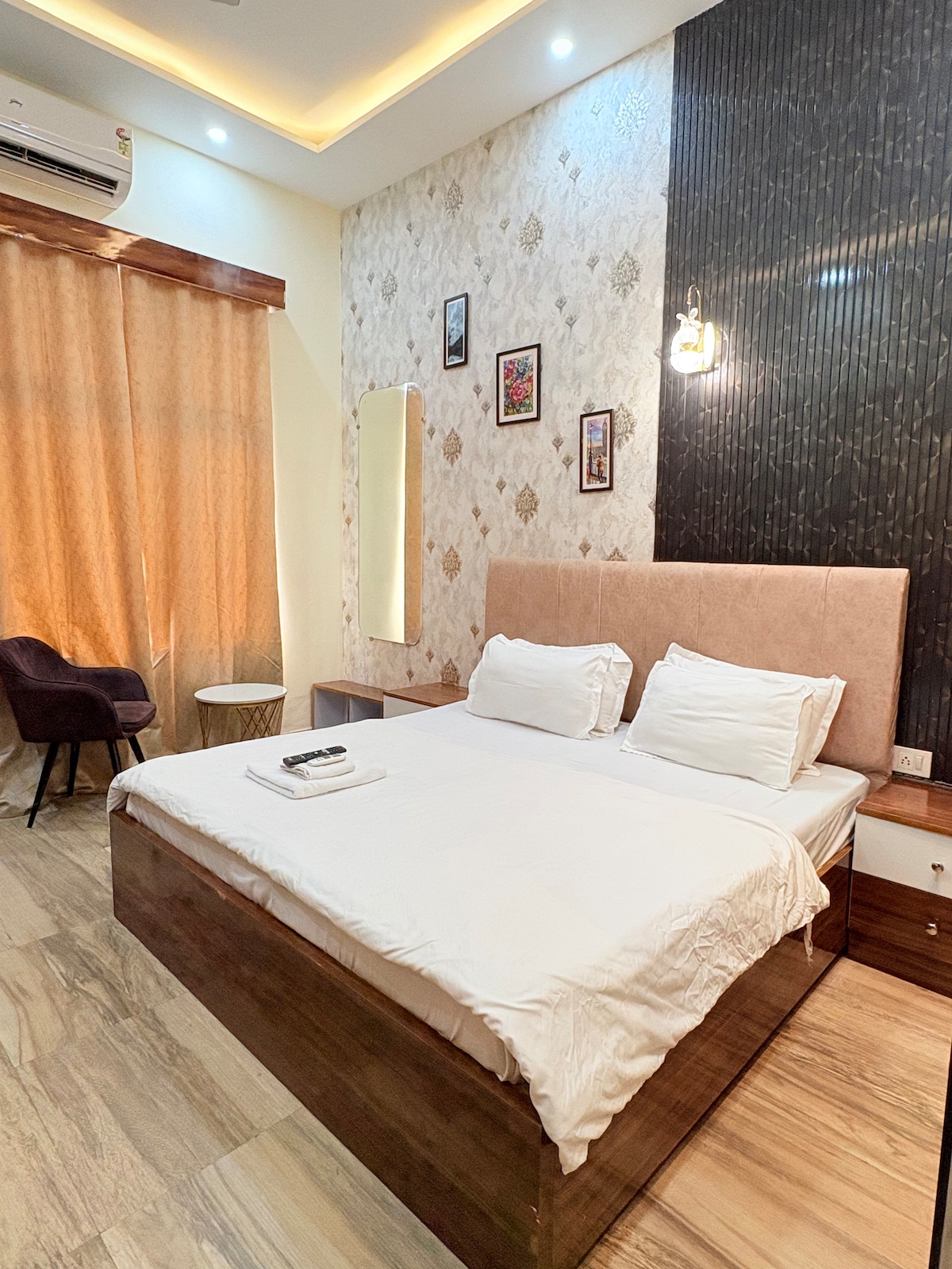 The first 2 Bhk Apartment that meets every requirements ✨ - 2 Bedrooms ( Master bedroom, second bedroom) - 2 King Sized Beds - A spacious living area with a comfortable seating arrangement - 2 bathrooms ( 1 in each of the bedrooms) - Kitchenette (with all cooking basics available and amenities stocked up, it is the perfect place to prepare your favourite meals) - A Shared Balcony area connecting with the apartment which can be the perfect space for your evening strolls Book Now!!