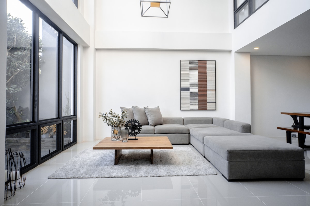 Este hermoso espacio minimalista y ordenado es el hogar de un decorador de interiores, con una gran sala de estar y techos altos, perfecto para viajeros que quieran probar cocinas nativas, explorar las playas y otros lugares turísticos o simplemente disfrutar de todo lo que Davao tiene para ofrecer. Un santuario perfecto para familias y amigos que buscan una estancia relajante lejos del bullicio de la ciudad. La zona es tranquila y aislada.