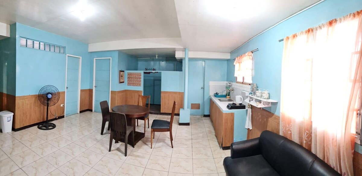 Una casa adosada de dos pisos, con 2 dormitorios buenos para 5 personas, pero puede alojar hasta 6 personas. En la planta baja se encuentra la sala de estar con 2 ventiladores eléctricos, cocina totalmente equipada, comedor, baño y ducha. (300 ₱ adicionales por día para usar el aire acondicionado en la planta baja). Las habitaciones están en el segundo piso con aire acondicionado. La propiedad se encuentra en un pueblo limpio, tranquilo y pacífico a pocos metros del aeropuerto de Davao con seguridad de día completo. Los huéspedes pueden beneficiarse de aparcamiento gratuito disponible in situ y wifi gratuito.