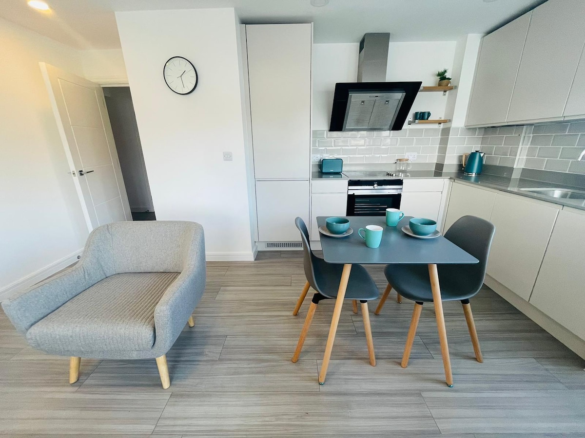 Un departamento de una habitación recientemente renovado con un diseño limpio y moderno. Cuidadosamente amueblado, cuenta con ropa de cama cómoda, decoración elegante y un ambiente acogedor. Disfruta de un televisor inteligente, cocina totalmente equipada, bañera, ducha y estacionamiento privado justo al lado de la puerta principal. Lo más destacado es un pequeño patio con césped artificial y una mesa de comedor al aire libre para cuatro personas. Ubicado cerca del castillo de Hadleigh y Country Park, es perfecto para viajes de negocios, parejas o escapadas relajantes.