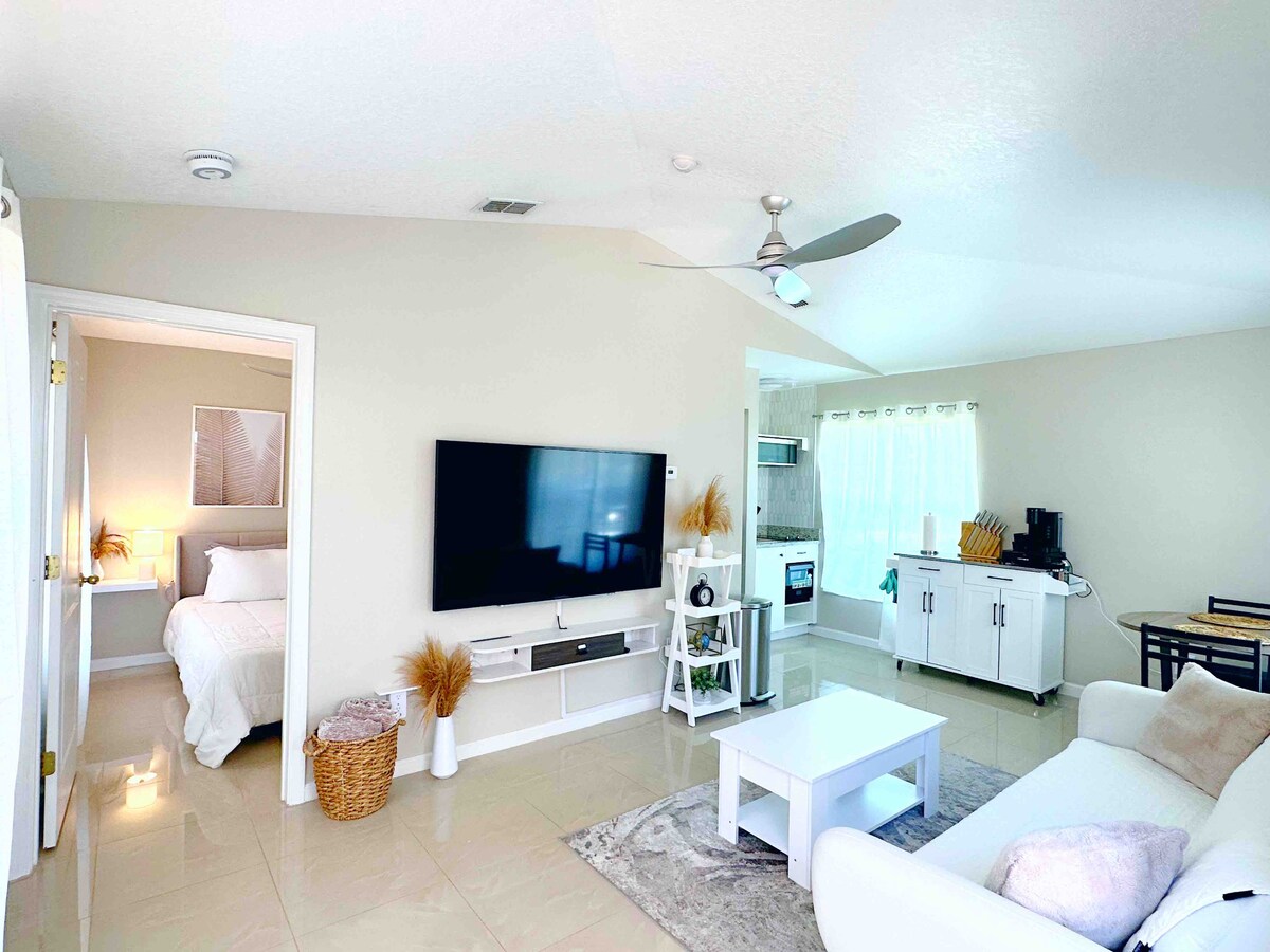 Escapa de las multitudes y relájate en esta casa de huéspedes totalmente privada de 1 dormitorio a solo 10 minutos de la playa y a 15 minutos de Daytona. Ubicada en un vecindario tranquilo y seguro, esta casa con piscina recientemente renovada cuenta con cocina completa, vestidor, sofá cama y acceso a una piscina compartida, ducha al aire libre y medio baño. Ideal para aquellos que quieren disfrutar de todo lo que Daytona tiene para ofrecer, ¡pero prefieren tener paz y tranquilidad!