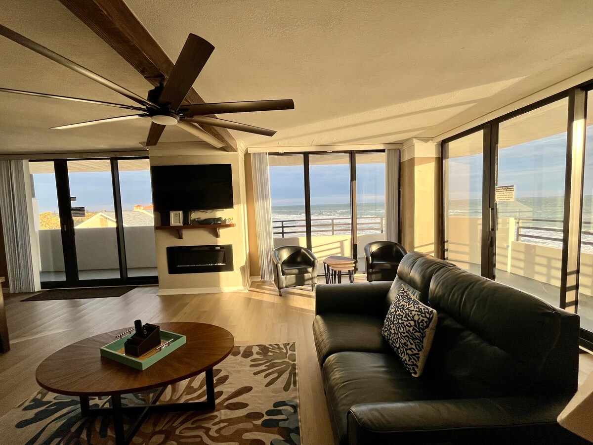 ¡No te pierdas esta experiencia de diseño Daytona-Chic frente a la playa que superará tus expectativas! Disfruta de esta casa de 2 dormitorios y 2 baños completos, con piscinas interiores y exteriores, acceso a la playa cerrado, jacuzzi, gimnasio y estacionamiento en el lugar. Edificio muy seguro y zona segura, justo al sur de la “playa más famosa del mundo”. ¡Dos balcones y vistas increíbles te permiten ver un glorioso amanecer matutino sobre el Atlántico o puestas de sol más allá del río!