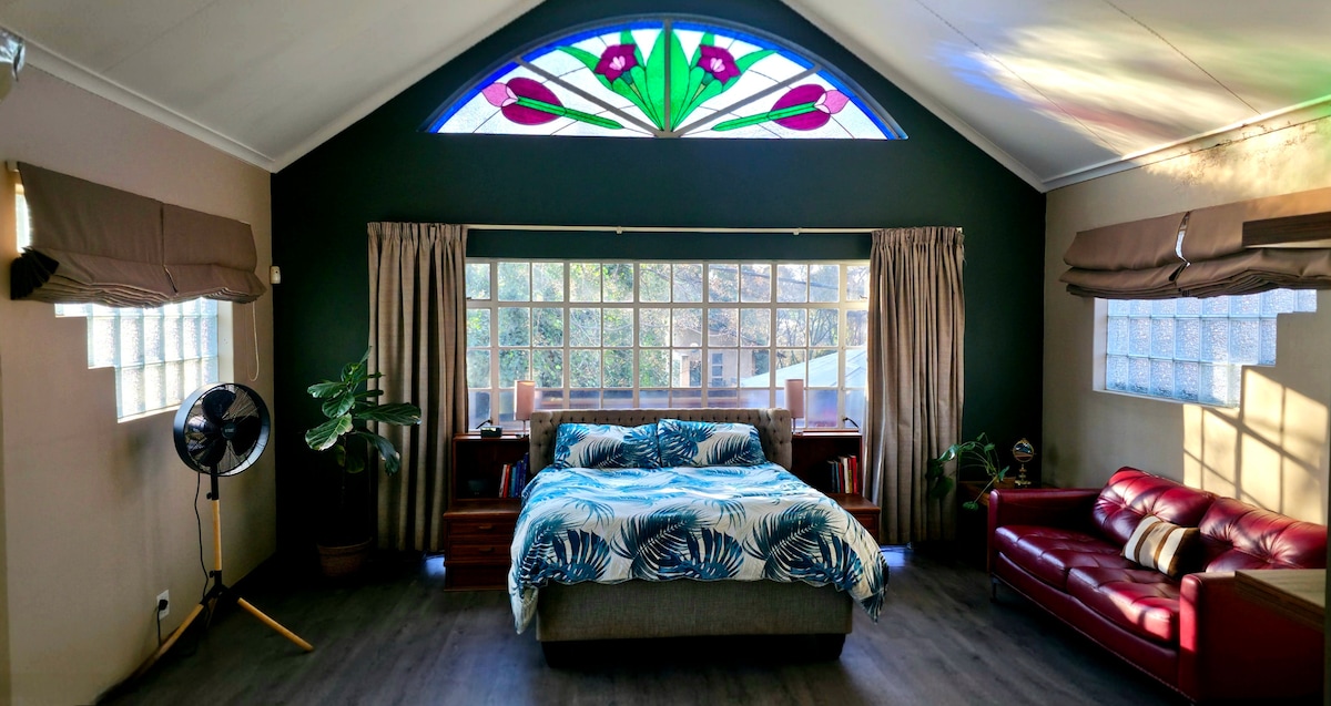 Relájate en la casa familiar y en un lugar tranquilo situado a solo 5 minutos del centro comercial Southgate, en el sur de Johannesburgo. La casa está rodeada de las siguientes atracciones: Mall of the South, The Glen Mall, Gold Reef City, Soccer City, Nasrec Expo Centre, Klipriviersberg Nature Reserve y Southdown Golf Course en Kibler Park. Los huéspedes pueden utilizar los 2 dormitorios, 2 baños, sala de televisión, sala de estar, comedor, cocina y la zona de Braai y piscina. El anfitrión vivirá en la casa de campo exterior.