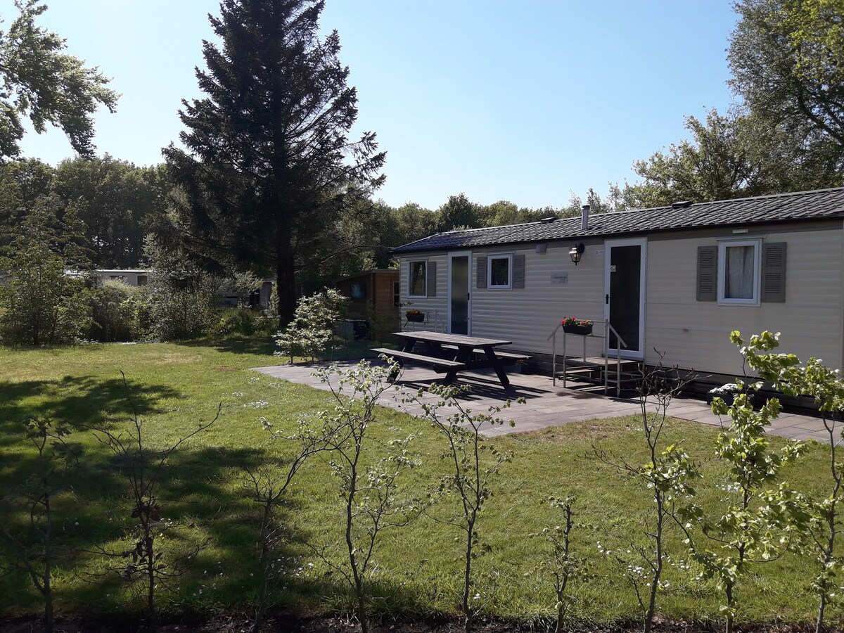 Solo apto para recreación... Relájate con toda la familia en este chalé limpio y ordenado al borde del bosque El chalet se encuentra en el bosque de la fila de camping y es adecuado para 2 adultos y 2 niños. A 3 o 4 km a través del bosque, encontrarás el IJsselmeer, donde puedes nadar y surfear. En la terraza del pabellón de playa, puedes disfrutar de un refrigerio y una bebida.