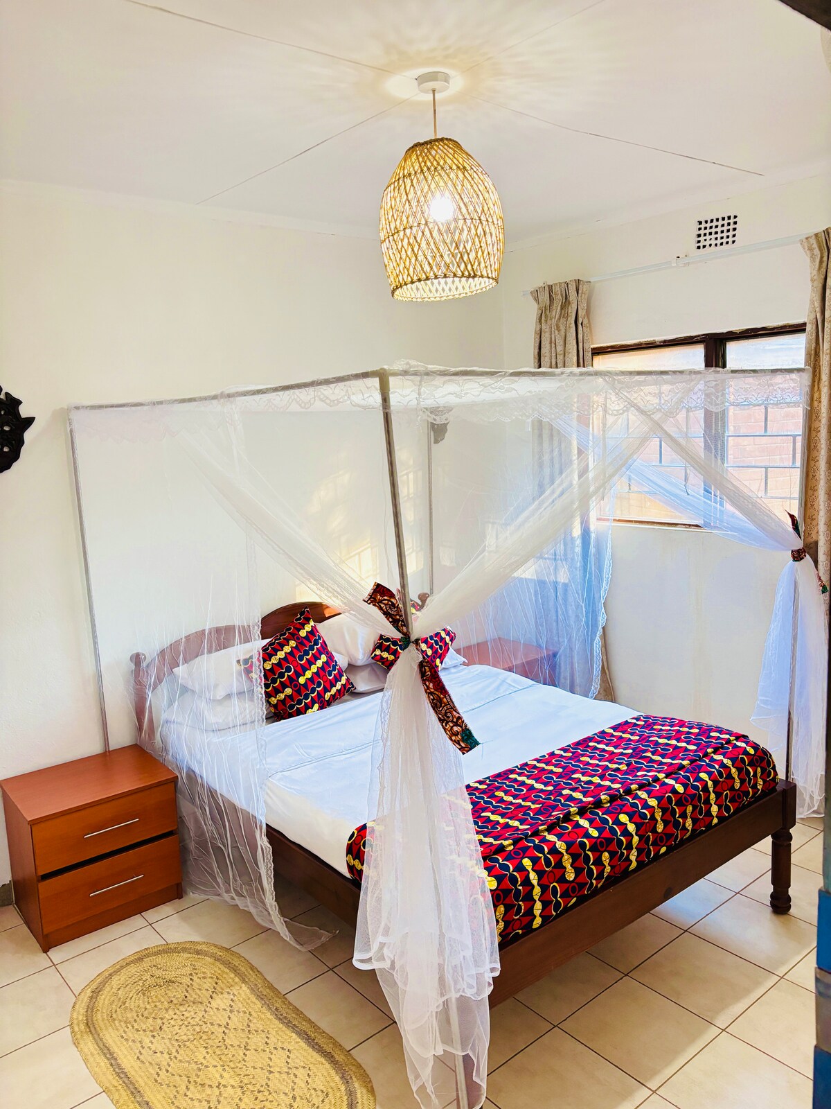 Welcome to Esther's Guest house, our new listing is a three bedroomed house featuring a minimalist design deco. The exterior deco is breathtaking featuring a de commissioned canoe which was fellied from lake Malawi, NKHATA BAY AND COLOURFUL PADDLES. Included in our package if you lodging with us is an uncapped internet access. Each bed room has its own private bathroom and toilet. The bedrooms offer enough space and comfort for a good night sleep.