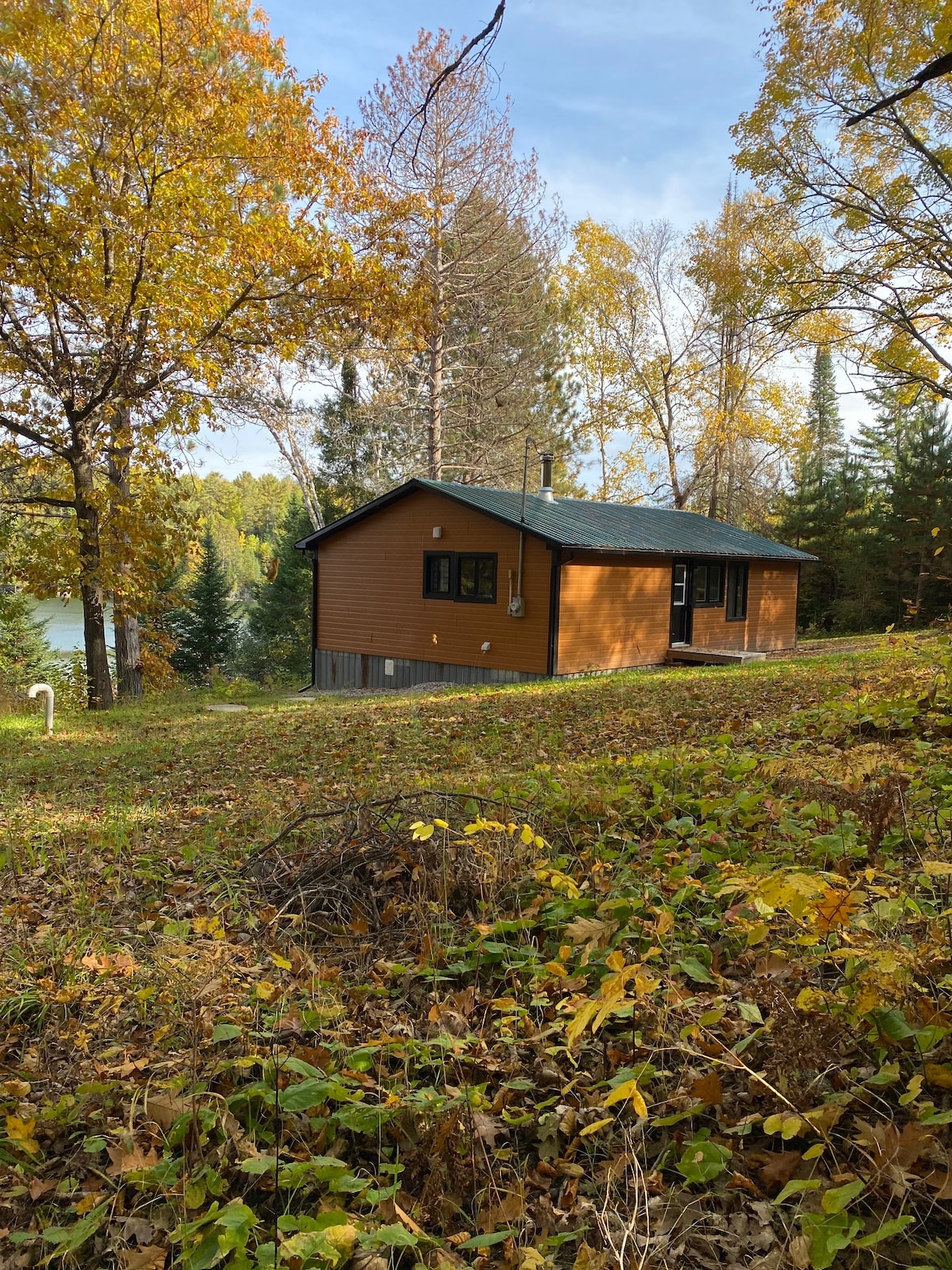 Hermosa vista con terraza en el lago. La planta principal es de concepto abierto y cuenta con cocina (amueblada), sala de estar y comedor. Baño completo con ducha. Dormitorio principal con cama tamaño queen. Accesible en silla de ruedas. Segundo dormitorio en la planta superior con cama tamaño queen y cama individual. Loft con 2 camas individuales (ver fotos). Cabaña totalmente amueblada. (Consulta «Reserva, normas de la casa, normas adicionales» para obtener más información). Hay disponibles bote de remos y canoa compartidos con chalecos salvavidas. No se admiten mascotas.