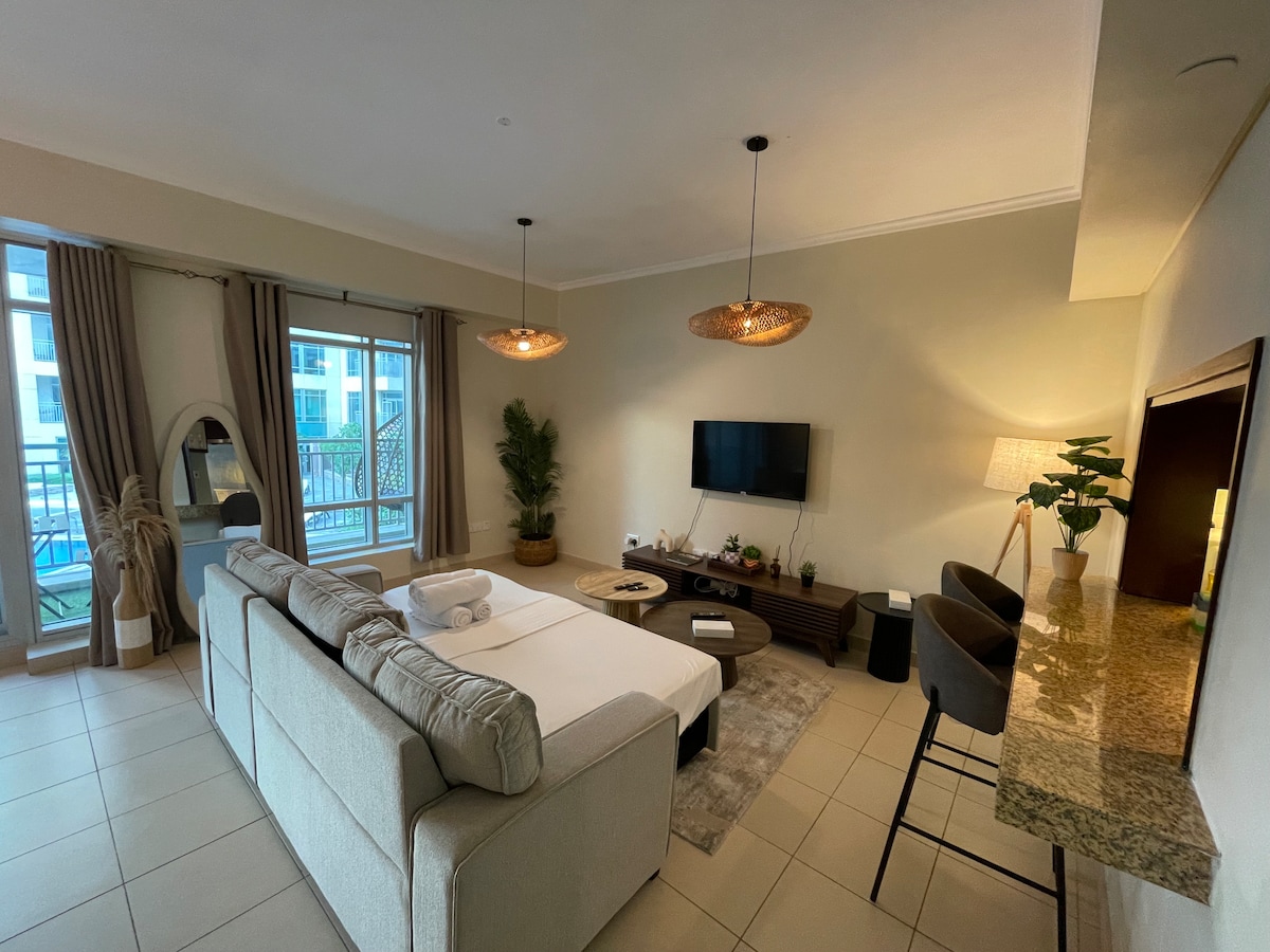 Explora lo mejor de Dubái en nuestro cómodo estudio, a solo 10 minutos en auto del centro de la ciudad. Relájate en el balcón y disfruta de las impresionantes vistas del atardecer del Burj Khalifa, el Museo del Futuro, el marco de Dubái y otros lugares emblemáticos. La comodidad está al alcance de tu mano, con el aeropuerto de Dubái a solo 12-15 minutos en coche y la playa más cercana a solo 15-20 minutos de tu puerta. Ya sea que estés aquí por negocios o por placer, nuestro estudio es el punto de partida perfecto para tu aventura en Dubái.