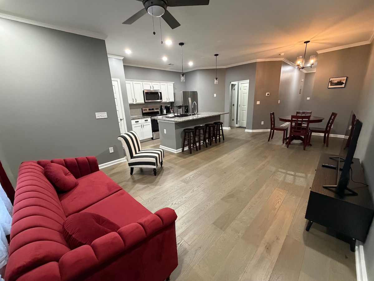 Disfruta de una nueva (construida en 2022) y limpia casa adosada de 1556 pies cuadrados. Barrio tranquilo, seguro (seguridad ADT), aparcamiento gratuito (2 vehículos), cocina totalmente surtida y equipada, internet de alta velocidad de 1 GB, 3 televisores inteligentes, parrilla, filtro de agua (agua potable alcalina remineralizada, limpia, pura y saludable) y filtro TrueAir. Cuenta con 3 dormitorios, 2,5 baños, vestidor, lavadora y secadora, estufa/horno/horno microondas y lavavajillas. A solo 13 minutos en coche del parque Stone Mountain y del acuario SeaQuest.