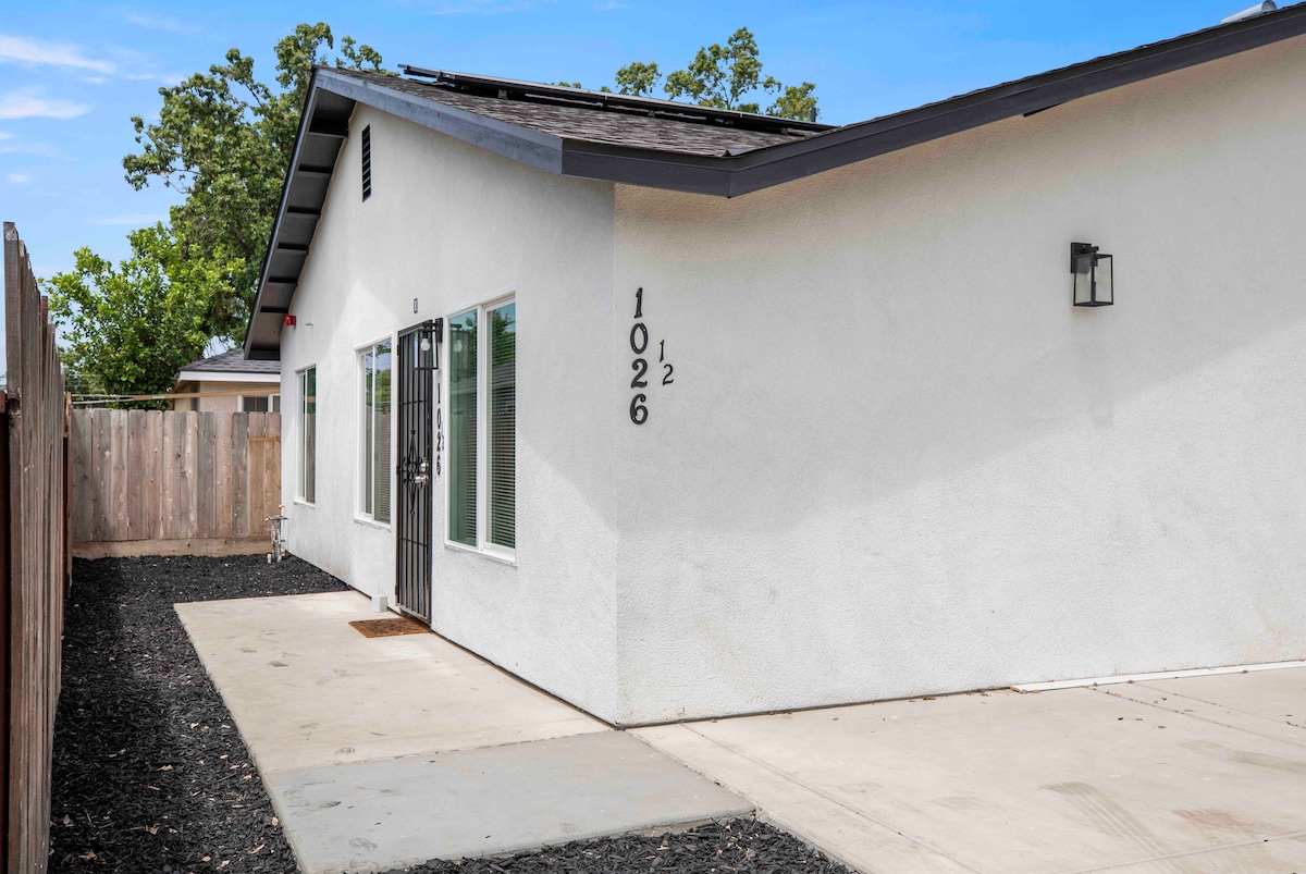 Llegada autónoma. Casita pequeña acogedora y completamente remodelada. Literalmente, a 3 manzanas de la autopista 99; en un barrio bien establecido. Un dormitorio y un baño. Cama tamaño queen; TV inteligente de 60 pulgadas en el dormitorio. Cocina TOTALMENTE equipada. Todos los electrodomésticos nuevos. Lavadora y secadora disponibles. Televisor inteligente de 55 pulgadas en la sala de estar. Wifi gratuito. La entrada tiene capacidad para 2 coches. Entrada sin llave con cerradura con teclado. ¡Reluciente de limpio!