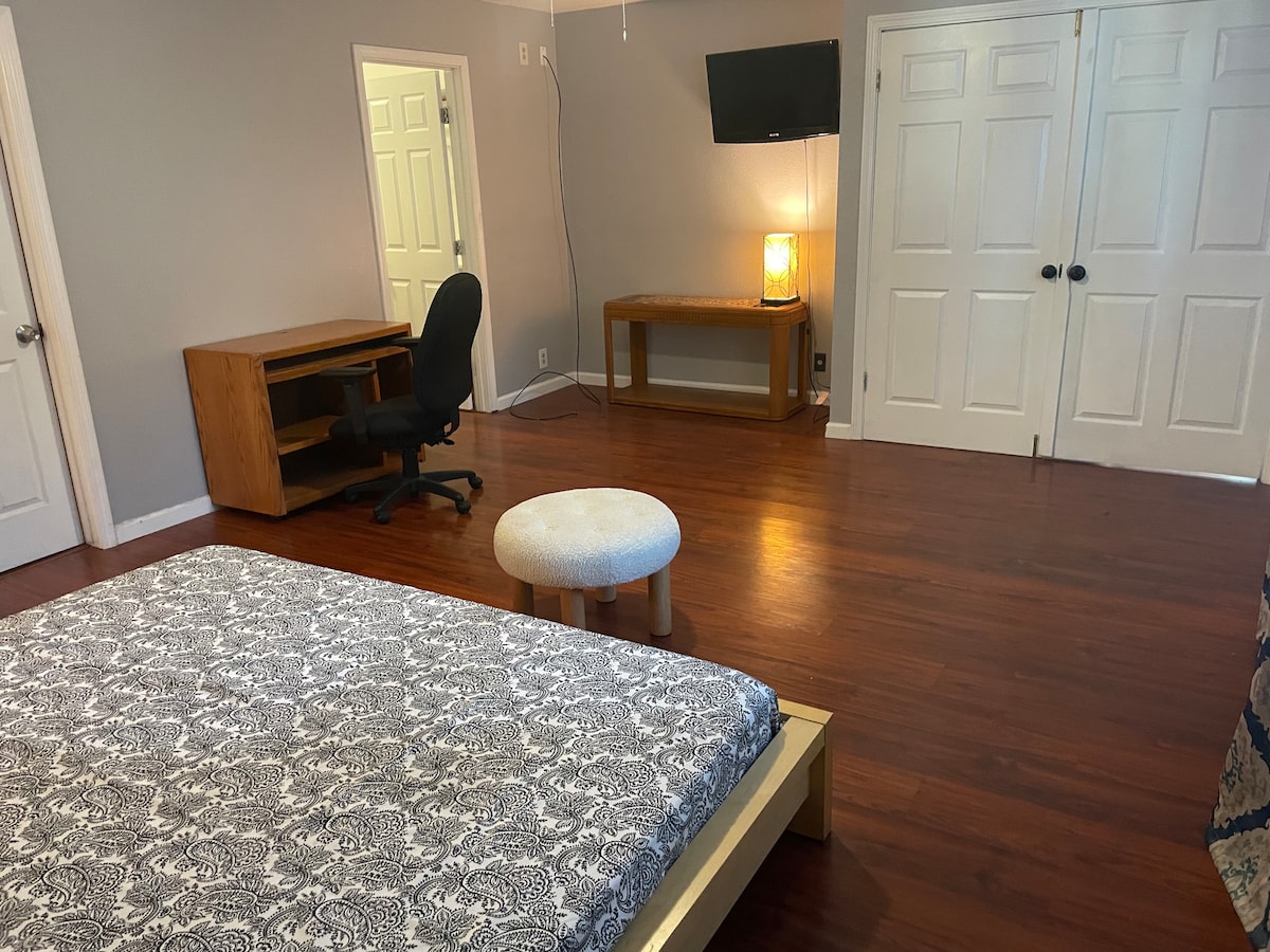 This space is great for extended periods of time or just to have extra room to stretch, you have a private entrance with a large private bathrm . There is a full size refrigerator, microwave, Air fryer and Coffee maker . There utensils available to you. Enjoy a clean work space and SmartTV. There is safe parking and a neighborhood park great to go for a run. Relax after a hard day of work, or play in this clean, spacious and serene space. located 5-7 miles from 3 major Hospitals