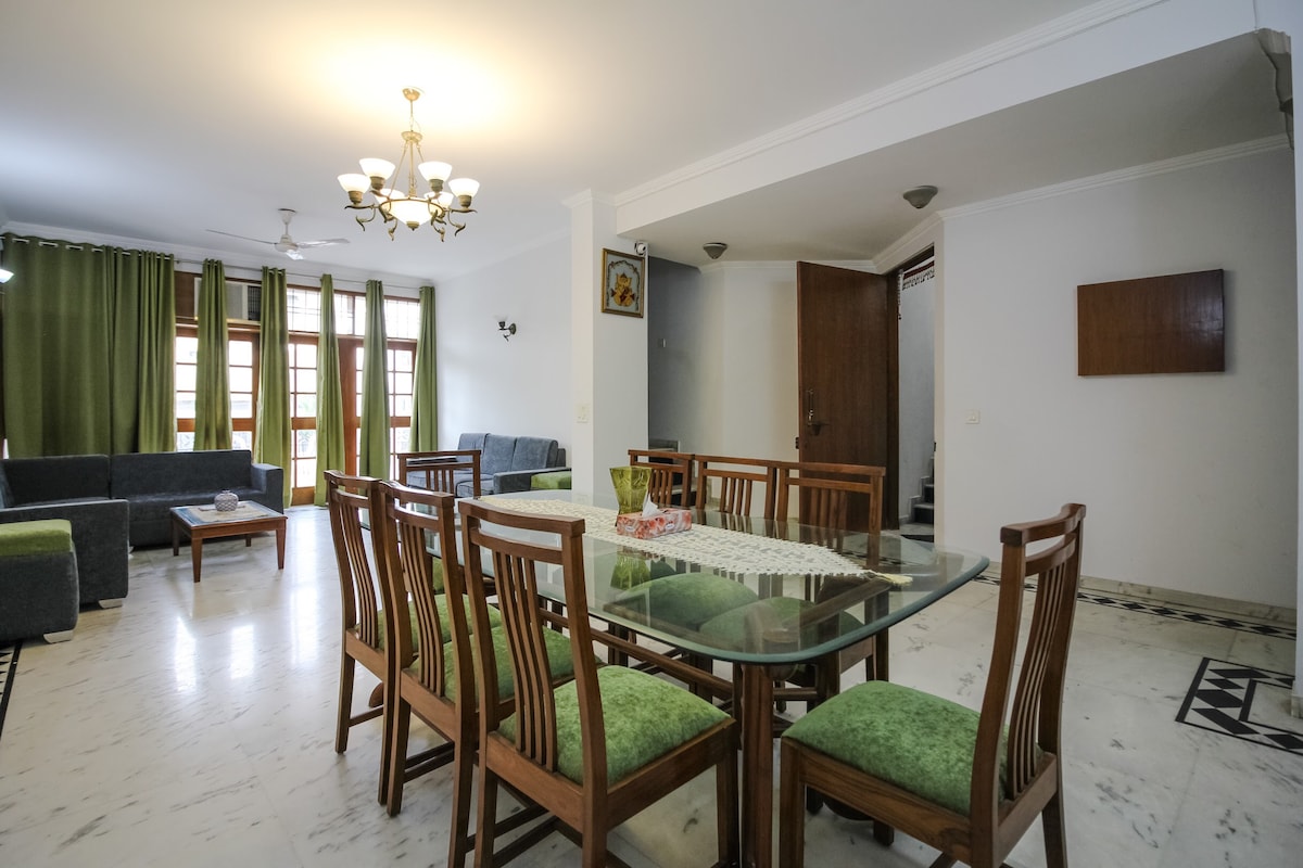 *Casas desinfectadas* Apartamentos con servicios de Under My Roof: alojamientos galardonados. Apartamento privado de 3 dormitorios en la primera planta en Green Park, AIIMS y Safdarjung Hospital en Green Park. Acogedoras habitaciones con baño adjunto, sala de estar separada con comedor y cocina completa: cocina de gas, nevera, microondas, hervidor eléctrico, utensilios de cocina, etc. Limpieza, ropa de cama, internet wifi de alta velocidad, TV Tata Sky, lavadora incluidos. A 5 minutos de Hauz Khas Village y Dilli Haat, ¡zona turística privilegiada!