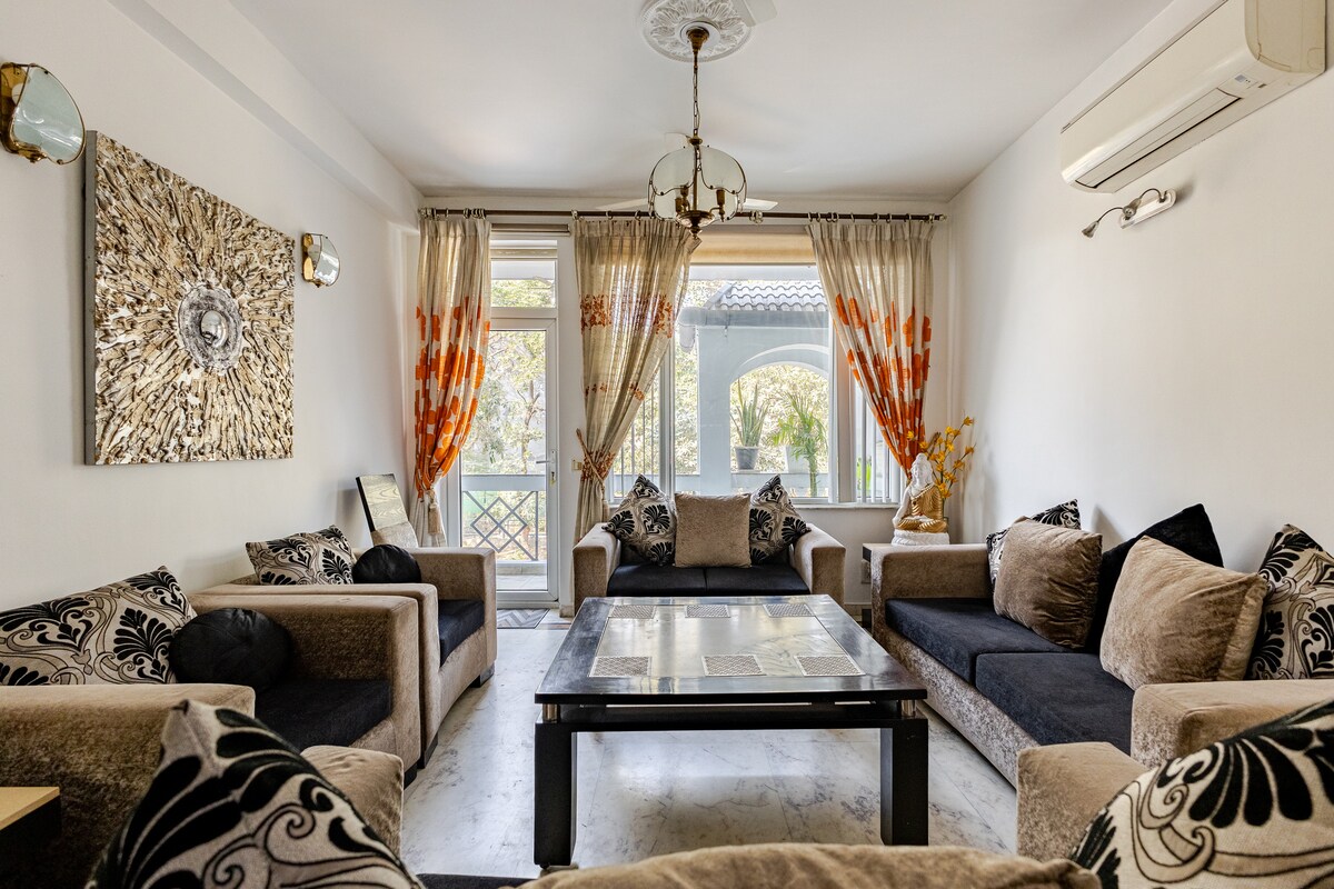 Un apartamento moderno y de lujo en el corazón del sur de Delhi con una enorme terraza y vistas al parque, bar al aire libre y pérgola. La casa tiene muchas comodidades como se indica - Televisión de 65 pulgadas con todos los servicios de streaming. - Cocina totalmente equipada con OTG, lavavajillas, purificador de agua. - Aire purificador. - Desayuno bajo petición. - Se proporcionan comidas caseras por un cargo nominal. - Apartamento bien iluminado, espacioso ytotalmente climatizado. Experiencia en recibir huéspedes del extranjero. 2 dormitorios, capacidad para 4 a 5 personas.