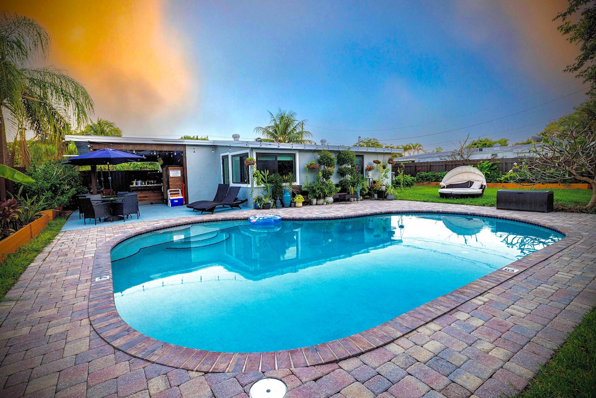 Impresionante villa en un barrio tranquilo rodeado de palmeras, con un espacio habitable de concepto abierto, 3 dormitorios, 2 baños, cocina de chef totalmente equipada con electrodomésticos de primera línea, comedor cubierto interior y exterior y zona de descanso, espacio de oficina, piscina climatizada, jacuzzi al aire libre, parrilla para barbacoa y mucho más. A 10 minutos del océano, a 15 minutos del aeropuerto FLL, cerca de los lugares más emocionantes de FLL. Publix, Starbucks, CVS a solo 5 minutos. ¡Estamos deseando recibirte!