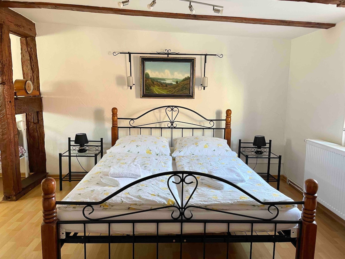 Ubicación rural en el pequeño pueblo de Grebs im Hohen Fläming a 45 minutos al suroeste de Berlín. El gran jardín comunitario ofrece suficiente espacio para relajarse. Nuestro departamento recientemente renovado en el segundo piso te invita a quedarte en un estilo moderno. También ofrecemos un servicio de recogida por acuerdo (radio de hasta 20 km) por un cargo adicional. También contamos con una piscina y un jacuzzi (cubierto en el exterior) y está incluido. Contáctanos con anticipación. 😊
