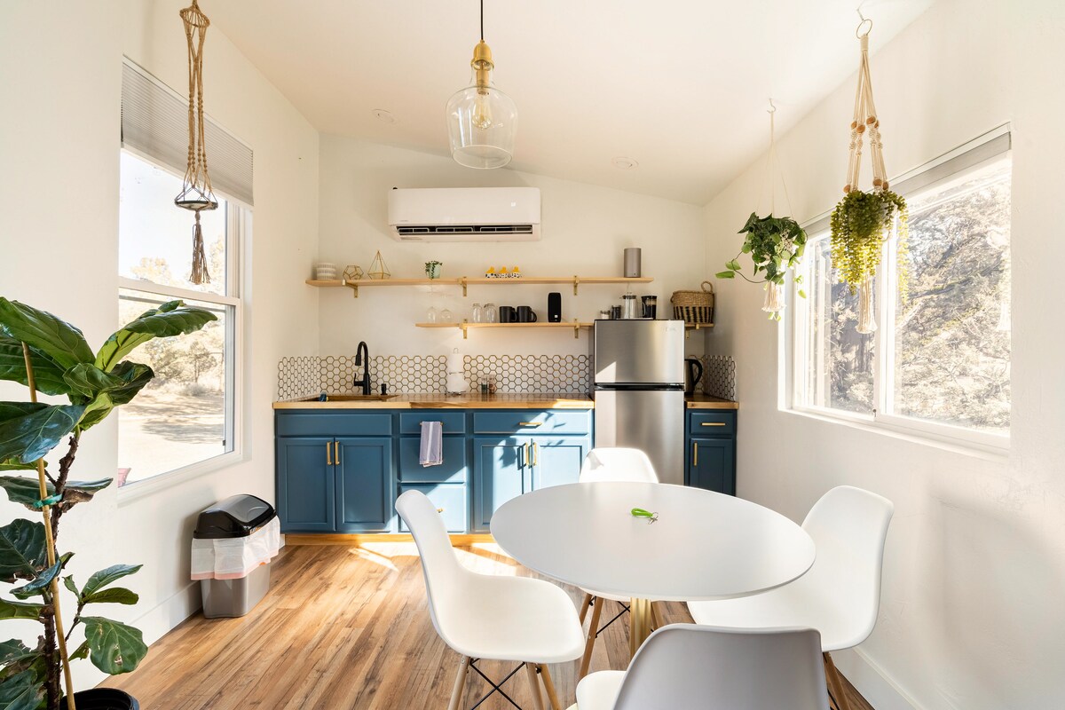 Restablece y rejuvenece en el Big Tiny. Nuestra minicasa cuidadosamente diseñada y única está totalmente equipada para tu comodidad y está rodeada de hermosas vistas al desierto, y también admite mascotas. Convenientemente ubicado a solo 15 minutos del centro de Bend. Disfruta de todo lo que ofrece el centro de Oregón. Comienza tus días bebiendo café en el patio delantero mientras bebes al aire libre. Relájate después de un día de aventura bajo el cielo estrellado con una cerveza local o una copa de vino junto a la fogata de propano.