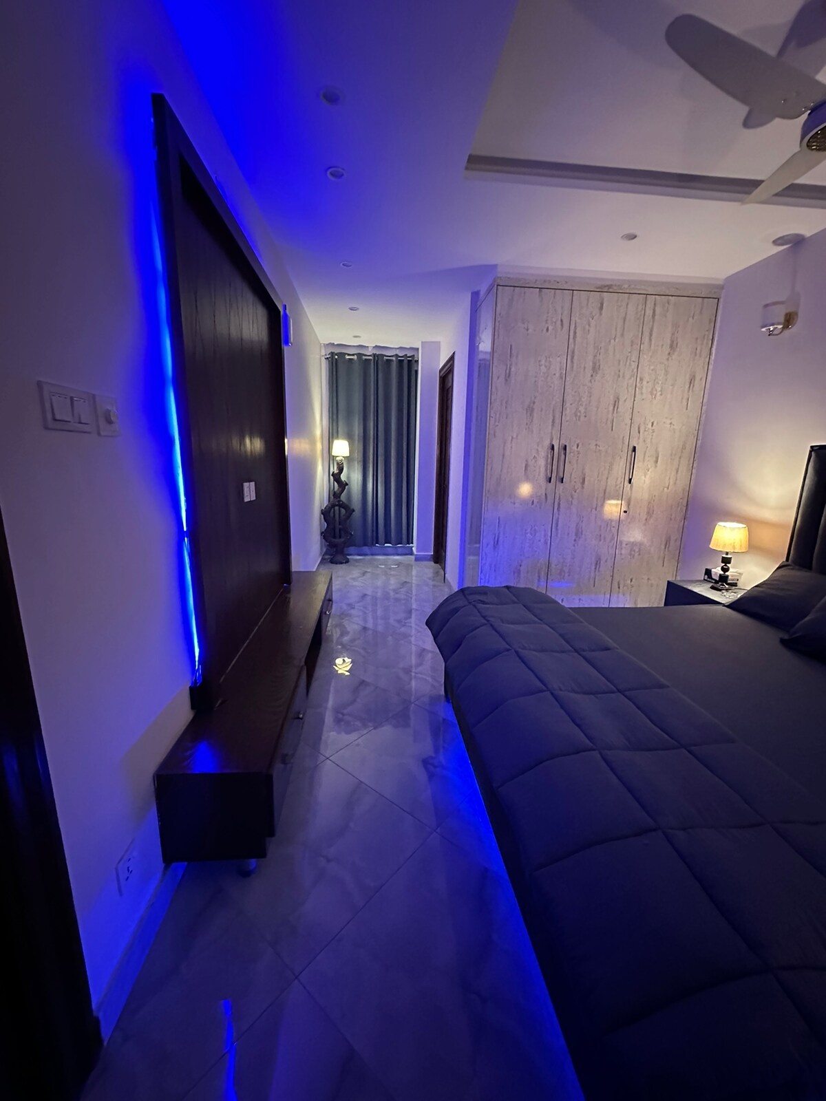 Bienvenido a Twilight, un departamento boutique de 1 dormitorio inspirado en la luna en el último piso de un edificio privado en DHA Phase 6, Lahore. Con una pared de cama de luna escultórica, cama tamaño king, salón cinematográfico con TV Netflix de 50 pulgadas, cocina artesanal, baño, WiFi rápido, agua caliente 24/7, estacionamiento gratuito y auto check-in sin problemas. A minutos de Raya Commercial. Ideal para parejas casadas, familias y viajeros de negocios que buscan una estancia elevada. 🌙✨