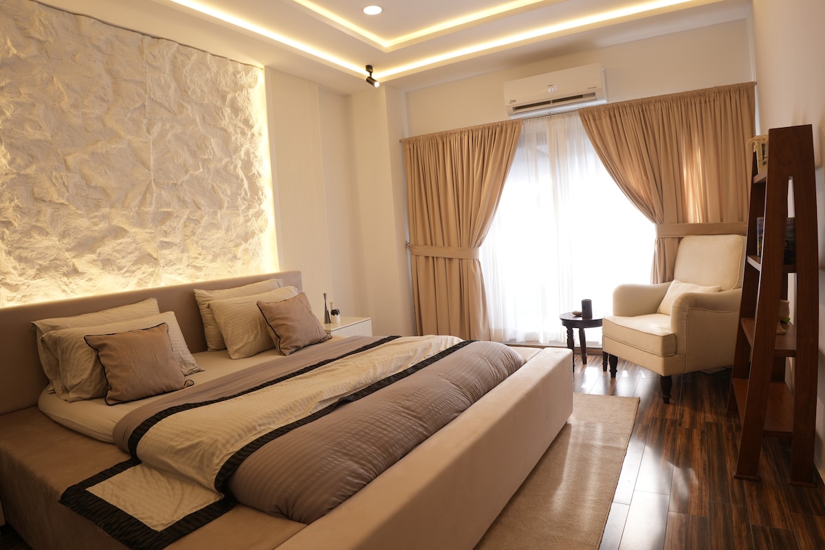 Welcome to The Beige H, a peaceful 1-bedroom apartment in Bahria Heights 1, D Block. Designed for relaxation with a touch of luxury, this cozy retreat offers a serene atmosphere for your stay. Perfect for guests who appreciate comfort and style, The Beige H has 1 Bedroom with a king bed, 2 Bathrooms, a spacious lounge with Netflix, WiFi, and all other amenities. The vicinity has a world-class gym, an indoor cool/heated pool, sauna and steam room.