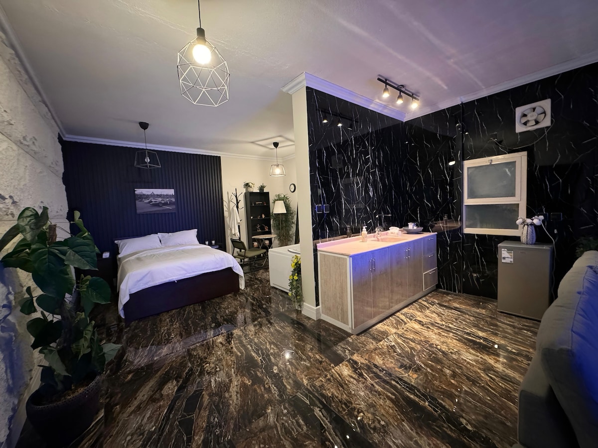 Le ofrecemos un alojamiento único y sofisticado en el que se proporcionan todas las comodidades que se merece, y aquí ofrecemos entretenimiento de Netflix y Shahid, y aquí también obtiene total privacidad y auto check-in, en un sitio distinguido y cercano a todos los lugares turísticos y de servicio.