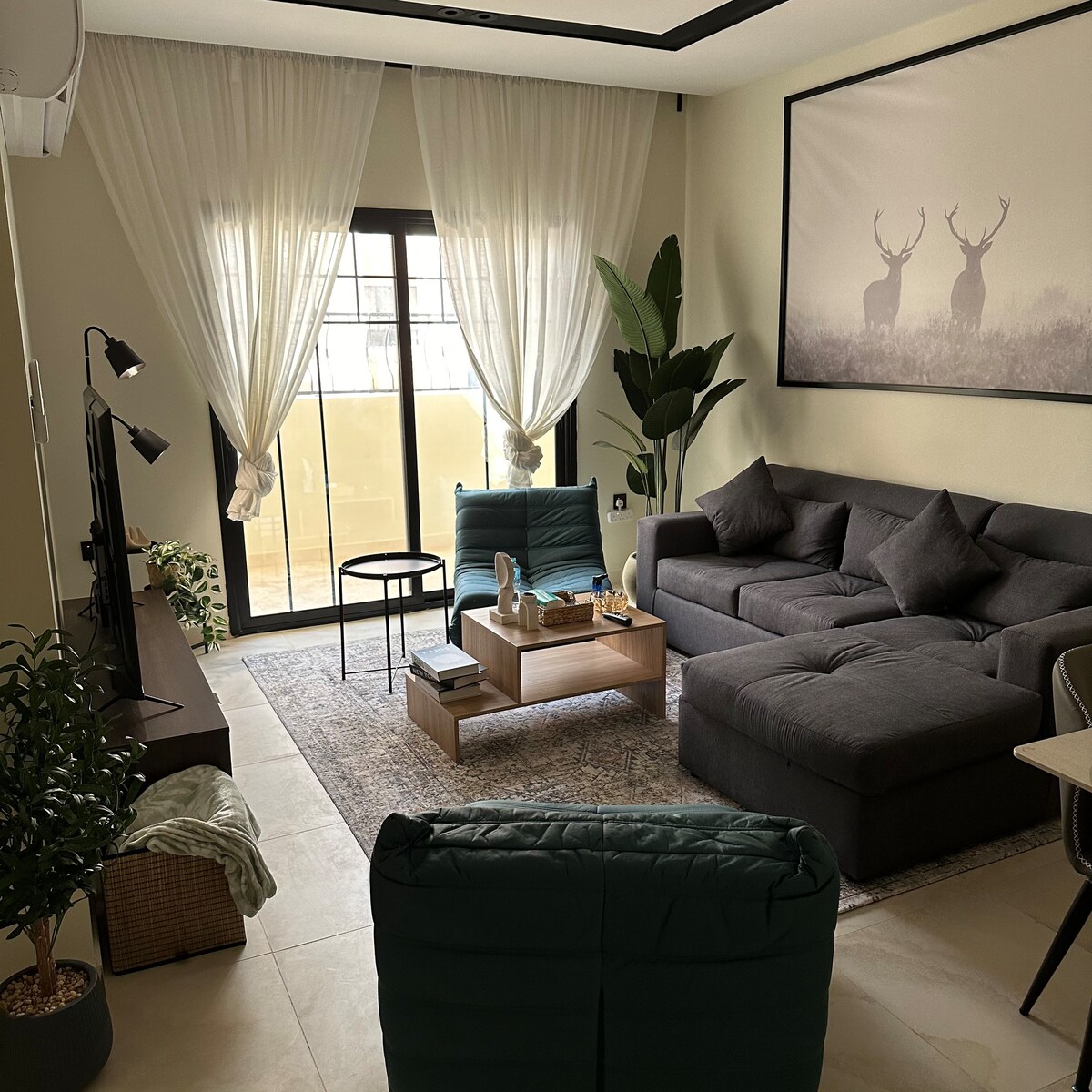 ✨ Disfruta de una estancia cómoda en Malaz, un apartamento bohemio luminoso con colores cálidos y toques modernos ✨ 📍 Ubicación: cerca de la línea exprés, Aramco, Universidad Rey Fahd, cafés y tiendas ☕ Características del alojamiento: Auto registro de entrada. Cafetera (Nespresso) Cocina completa con horno, freidora de aire, nevera, microondas Lavadora y secadora Cama tamaño king con un colchón real muy cómodo Tostadora, café, té, refrigerios Vista perfecta del oeste para la puesta de sol Televisor de 65 pulgadas con todas las aplicaciones de streaming (Netflix, Disney +, etc.) Preparamos todo para que te sientas como en casa, eres bienvenido