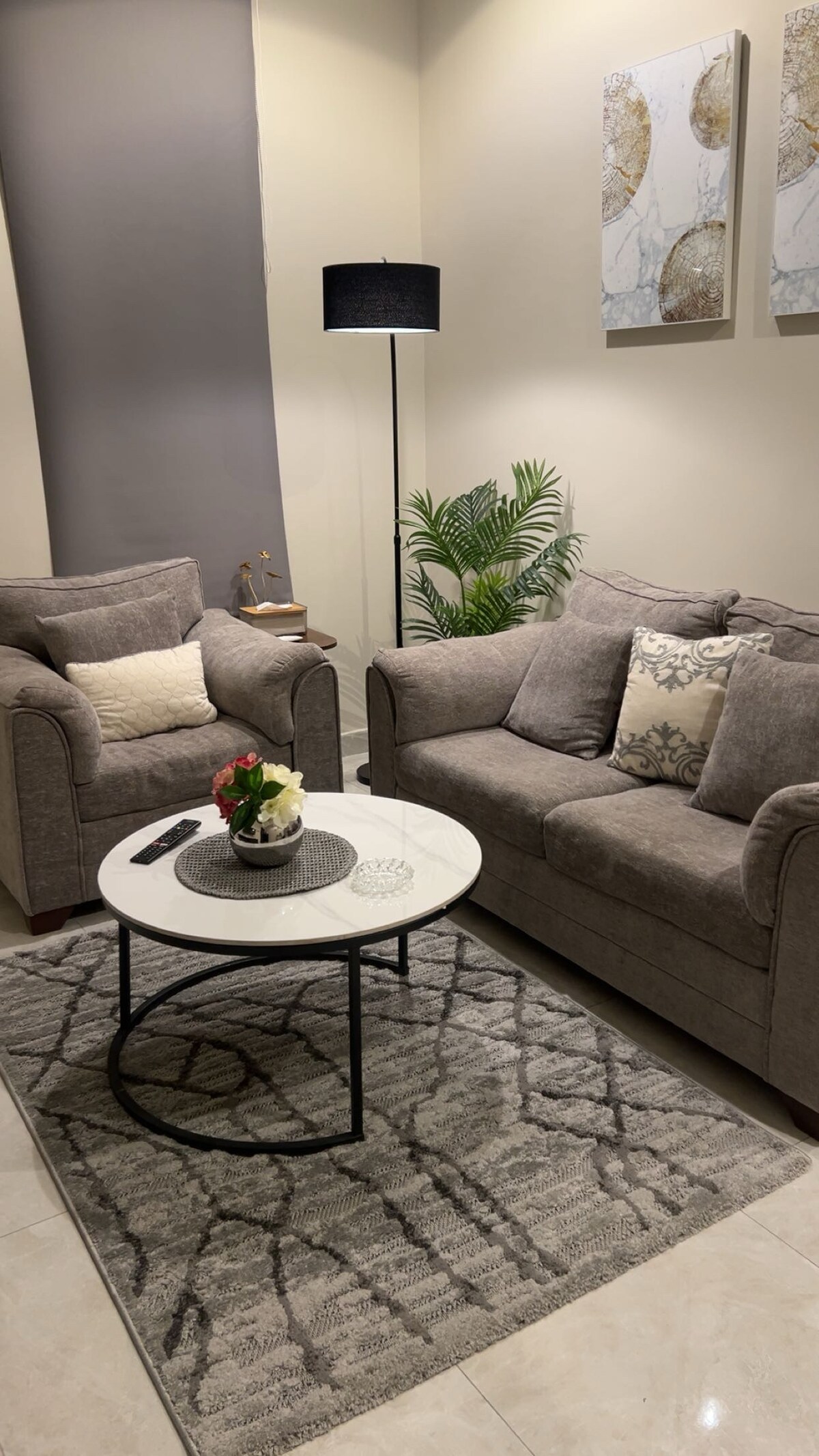 Un apartamento de un dormitorio, un cine, una cocina que satisface todas tus necesidades, una elegante y espaciosa sala de estar con autorregistro, estratégicamente ubicado. Distrito de Al Seef. Cerca de todos los servicios Restaurantes y cafeterías (a un minuto sobre el mar de Rakah y el Zakat, a seis minutos de Dhahran Expo , a diez minutos de la Universidad Imam Abdulrahman Bin Faisal) Tiene un televisor inteligente de 60 pulgadas con una suscripción a Shahid, internet, un calentador de agua, los mejores tipos de camas. Los colchones se cambian a diario, y la limpieza y esterilización se cuidan con mucho cuidado. Que Dios te bendiga.