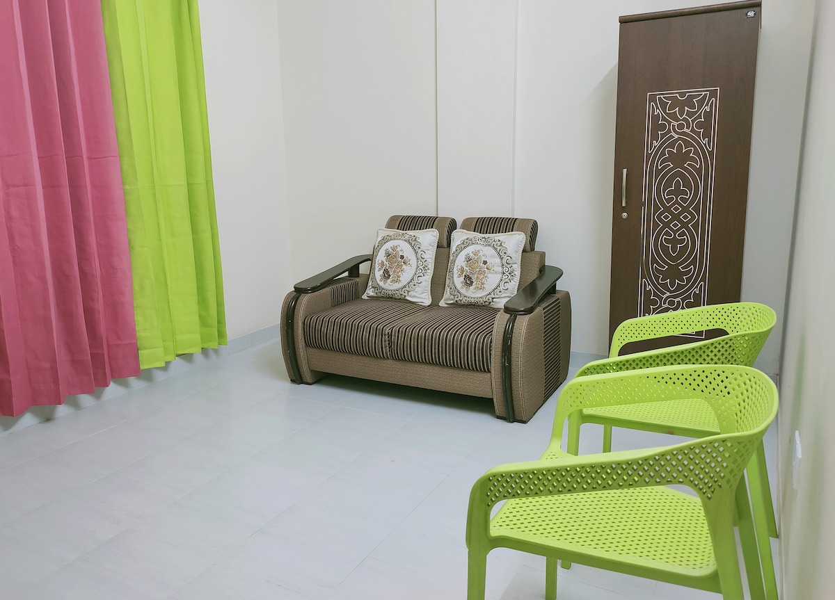 Este es un apartamento bien iluminado y recién amueblado. Tiene 2 dormitorios (1 aire acondicionado) y la cama principal tiene calefactor, Almirah, gran TV inteligente wifi con conectividad DTH Full HD 24/7, incluidos canales locales e internacionales, nevera grande, horno microondas, purificador de agua, wifi de alta velocidad 24/7, caja de primeros auxilios, zapatero, sofás, mesa de lectura/portátil, chimenea de gas, utensilios de cocina, mesa de comedor con artículos necesarios, sábanas limpias, toallas, mantas, etc.