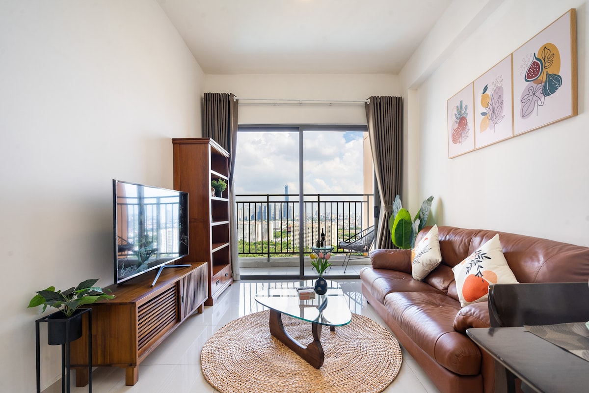 Observa y siente la ciudad en sí. La mejor vista incluye 2 edificios emblemáticos de Saigón (la torre Bitexco y el Landmark 81). - Vista panorámica de la ciudad. - Atrapa múltiples fuegos artificiales y puestas de sol. - Piano incluido, TV de 75 pulgadas para películas y deportes. - Cocina totalmente funcional con el mercado Nam An abajo, perfecta para grupos o parejas que quieran cocinar por la noche. - Gran lugar de trabajo de día y de noche. - Acceso a la piscina (planta G) y al gimnasio (segunda planta). - A 5 minutos del distrito 1 (centro de la ciudad). - A 5 minutos de la zona de Thao Dien.