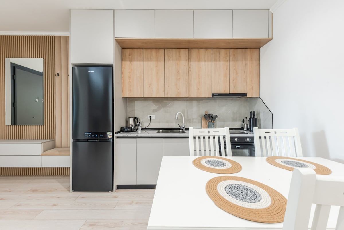 Sencillo en este lugar tranquilo y céntrico. Olivia es un moderno apartamento 1+1 con detalles de color verde oliva, creando un ambiente cálido y relajado. Situado cerca de la estación de tren, ofrece fácil acceso a la ciudad. El cómodo dormitorio y la luminosa sala de estar se complementan con un encantador balcón, perfecto para el café por la mañana o la relajación por la noche. Ideal para aquellos que buscan estilo y conveniencia.