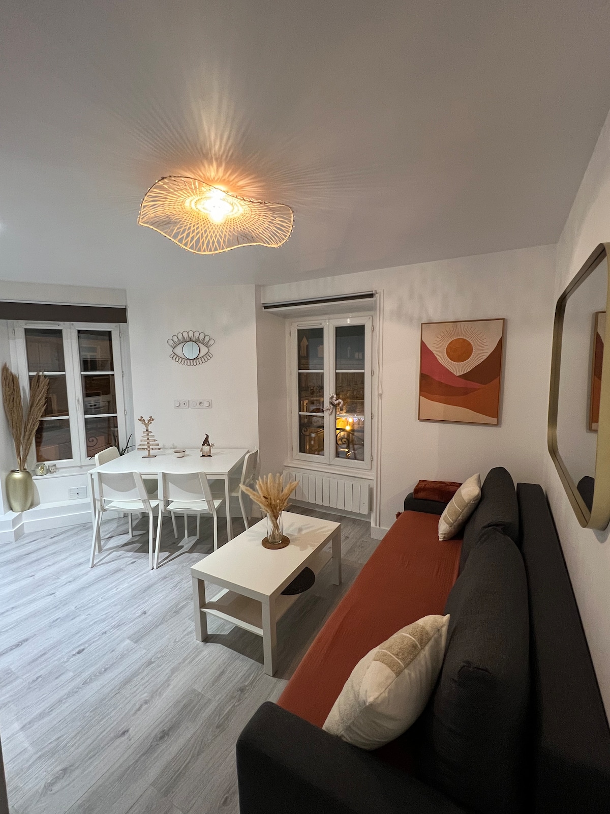 Encantador estudio, decorado con cuidado, luminoso, situado en una zona animada en pleno centro histórico de Dinan. Estará situado a dos pasos de tiendas, panadería, restaurantes , bares ( incluso puede disfrutar del restaurante en la parte inferior de la residencia). Todos los lugares atípicos de la ciudad están a poca distancia andando (Jerzual, jardín Inglés, torre del reloj)