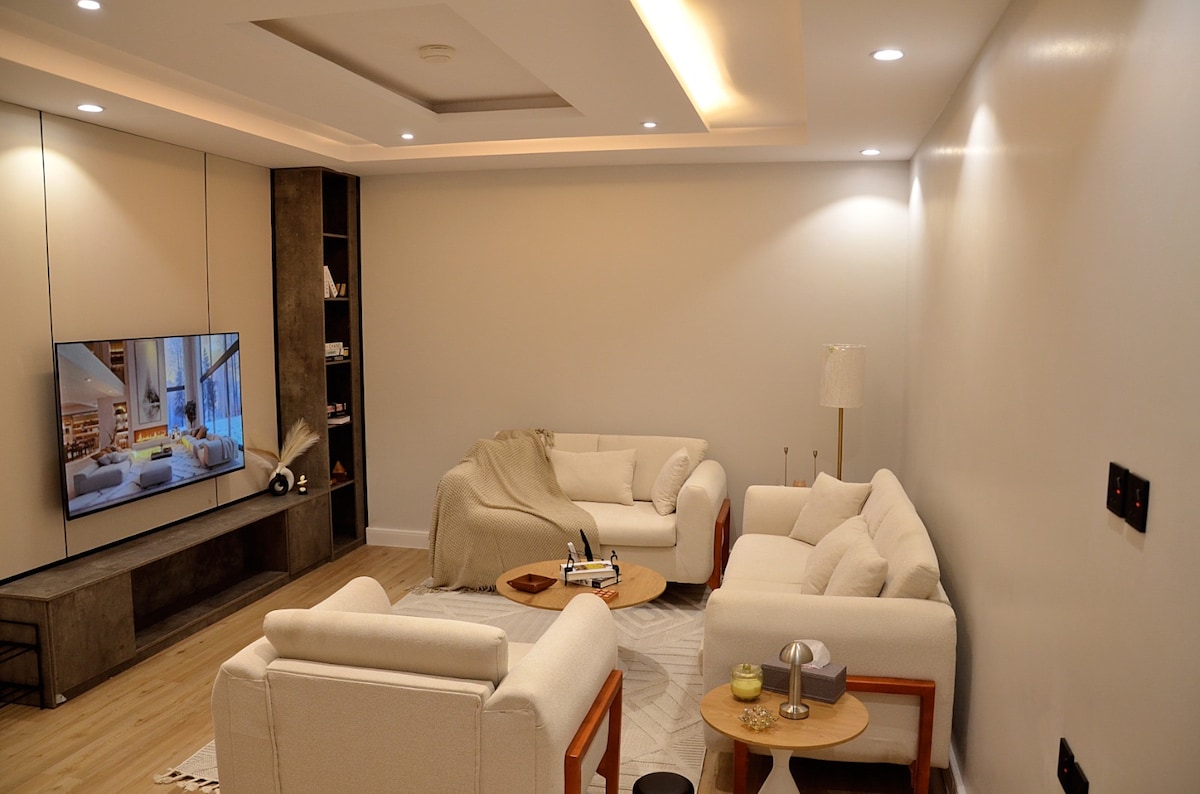 Villa moderna de tres plantas con entrada privada para el coche y (entrada inteligente) y jardín exterior con sala de estar y piscina privada para la villa, además de un empleado para la villa y cuarto de servicio Sala de estar de 8*7 con pantalla de cine Samsung de 85 pulgadas con vistas al jardín y a la piscina + Internet 4G 5G, además de persianas para bloquear la luz solar + rincón de café con todos sus dispositivos + cocina integrada ( todo lo que necesitas para disfrutar y relajarte ) Una villa moderna, tres plantas, con entrada privada para el coche, una zona de estar al aire libre con una sala de estar y una piscina privada para la villa ( todo lo que necesitas para divertirte y relajarte )