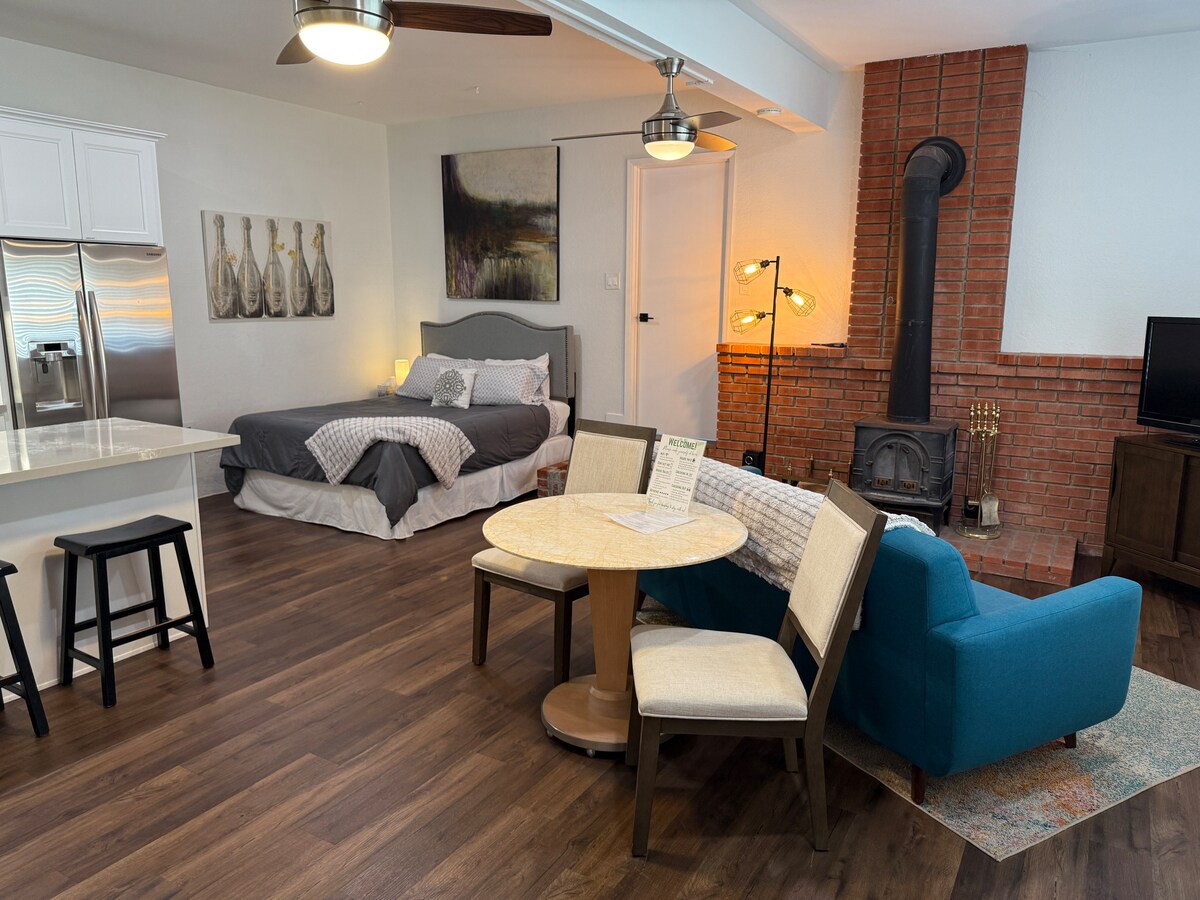 Te encantará este espacio tranquilo y céntrico, a pocos minutos del corazón de la bulliciosa escena de restaurantes y microcervecerías de Vista (a 5 minutos) y de las playas de Oceanside y Carlsbad (a 15 minutos). Este estudio de una habitación tiene su propia entrada, baño privado, cama tamaño queen, nevera completa, elementos básicos de cocina (incluyendo tostadora y microondas), TV con capacidades de transmisión y estufa de leña original. Rodeado de árboles y pájaros cantores, ¡no hay mejor lugar en Vista!