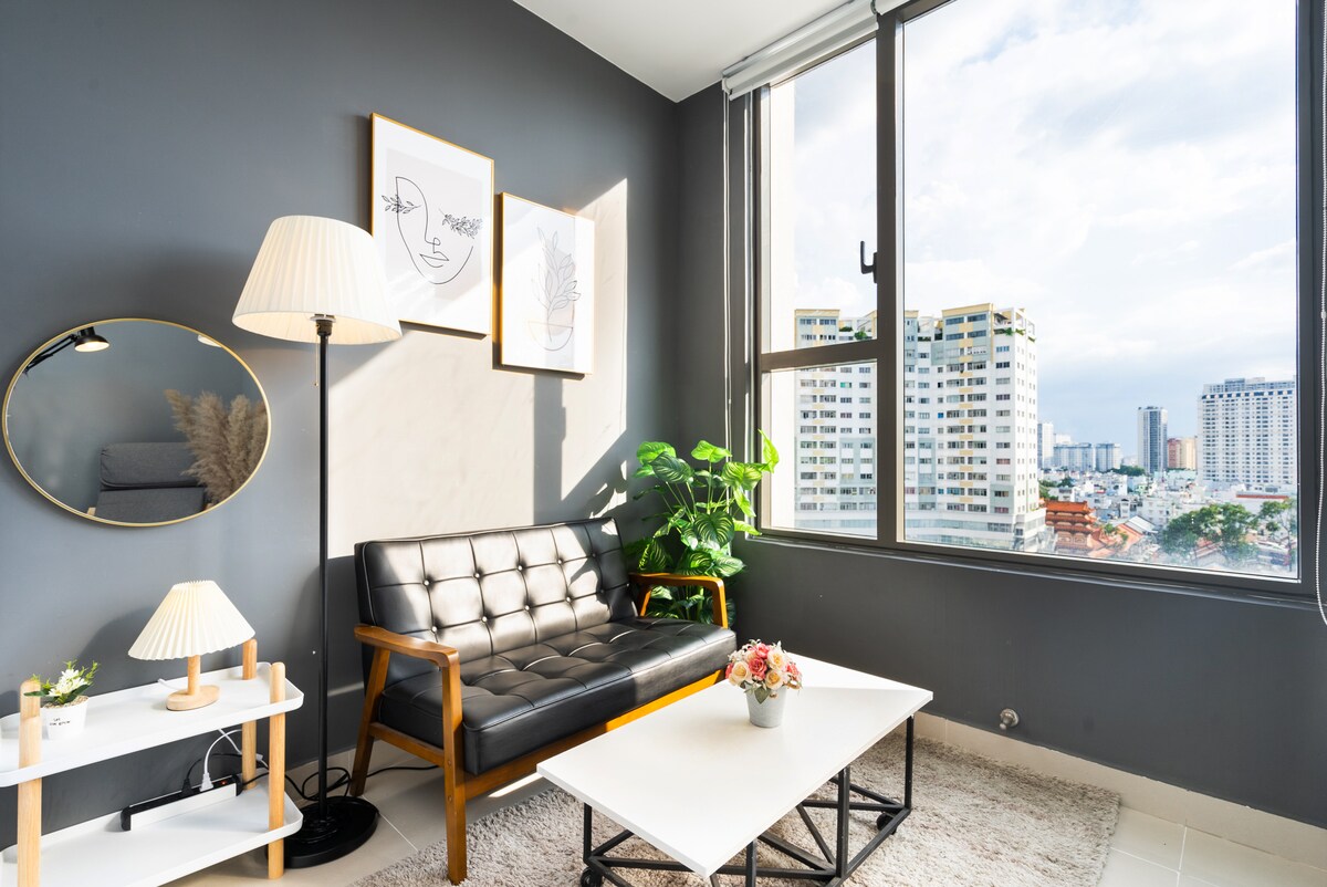 Elegante apartamento de una cama en Ben Thanh D1, balcón, piscina