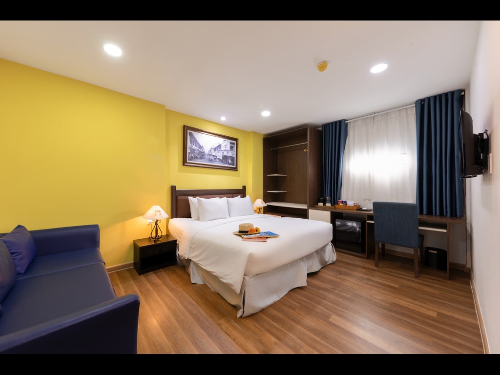 Nuestro hotel se encuentra en la vibrante calle De Tham, justo en el corazón del Distrito 1, a solo unos pasos de la calle peatonal Bui Vien. Es ideal para los huéspedes que disfrutan de la vida nocturna y quieren explorar la ciudad de Ho Chi Minh después del anochecer. Ten en cuenta que la zona puede ser ruidosa por la noche debido a la música y las multitudes. Las habitaciones están limpias, cómodas y totalmente equipadas con todas las comodidades básicas para una estancia agradable.