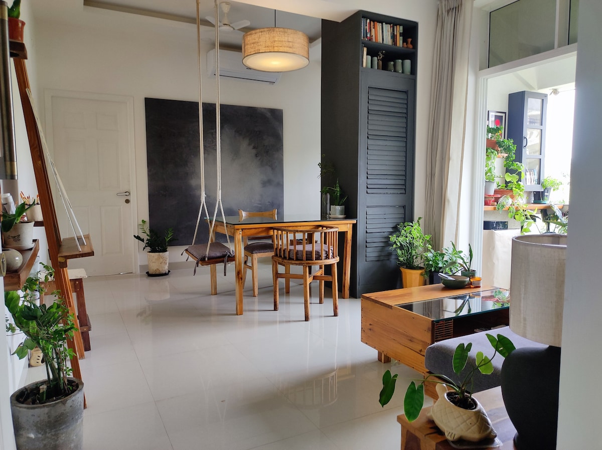 ***Como aparece en Architectural Digest India en agosto de 2022, ¡así como Elle Decor and Design Pataki !*** Nuestro hermoso ático está en el pintoresco pueblo de Nerul, con vistas a los verdes arrozales y al río Nerul. La atracción más destacada es la impresionante piscina profunda, que será para tu uso privado, y una encantadora y espaciosa terraza para disfrutar de esas increíbles puestas de sol. ¡La escapada romántica perfecta!