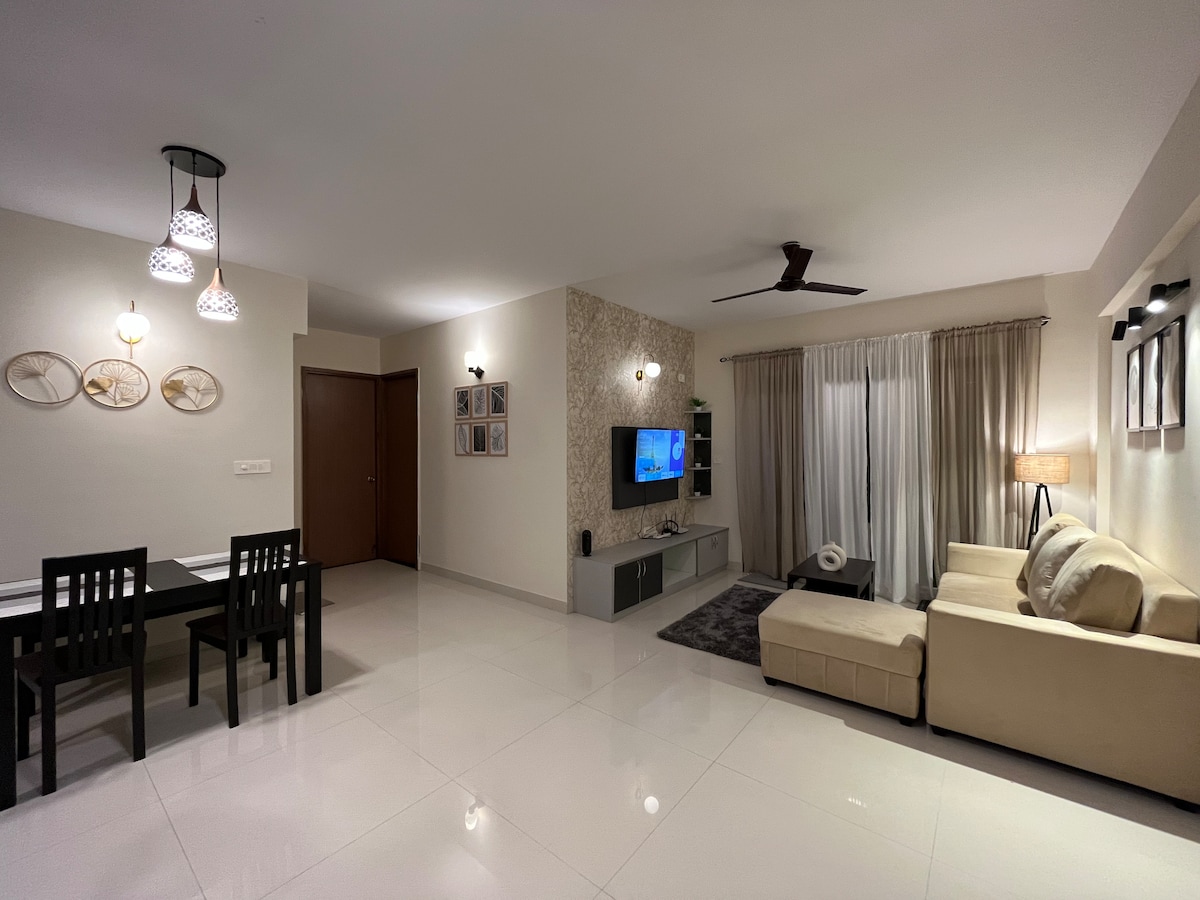 Retiro de 1 dormitorio en forma de almeja ☀️ Disfruta de un hogar lejos de casa en nuestro 1BHK con vistas impresionantes, ideal para profesionales y familias. Ubicado cerca de Infosys y Wipro, disfruta de comodidades modernas: lavadora, nevera, microondas, estufa, hervidor, cafetera, Wi-Fi, TV inteligente de 55" y tenis de mesa. Comunidad cerrada apta para mascotas para mayor seguridad. Relájate en el balcón con vistas panorámicas. ¡Reserva ya para disfrutar de la mezcla perfecta de comodidad, conveniencia y tranquilidad!