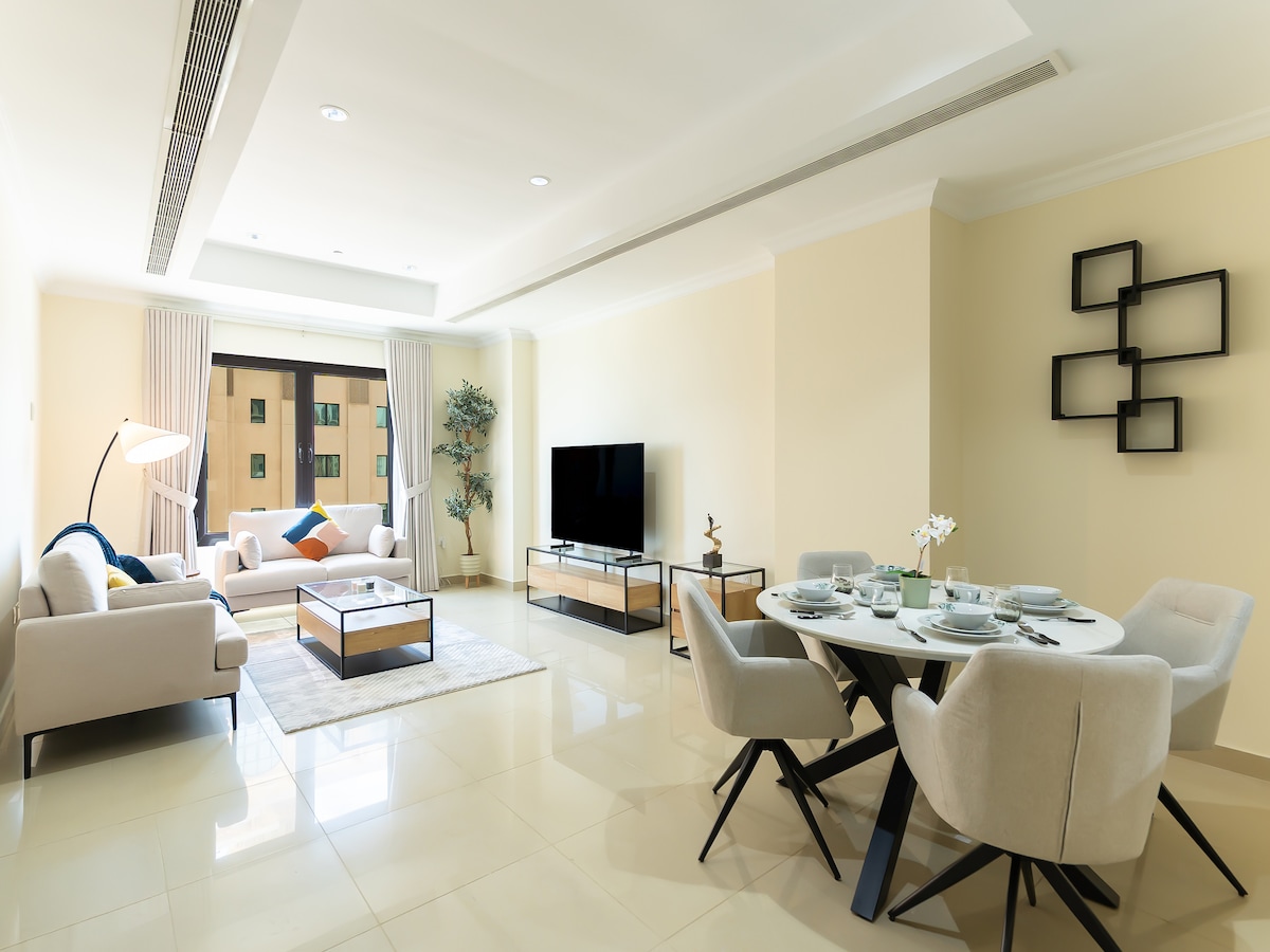 Alójate con estilo en este apartamento moderno de 1 dormitorio completamente amueblado en Porto Arabia, The Pearl. Perfecto para viajeros solitarios, huéspedes de negocios o parejas, este espacio ofrece comodidad de hotel con la privacidad de un hogar. Ya sea que estés aquí para una escapada rápida o una estancia entre semana, disfruta de lujo, comodidad y una ubicación inmejorable. Características: Piscina y gimnasio Área de juegos para niños y sala de estar al aire libre Seguridad las 24 horas, 7 días a la semana. Diseño de planta abierta con sala de estar y área para dormir Inodoro para huéspedes, lavandería y espacio de servicio