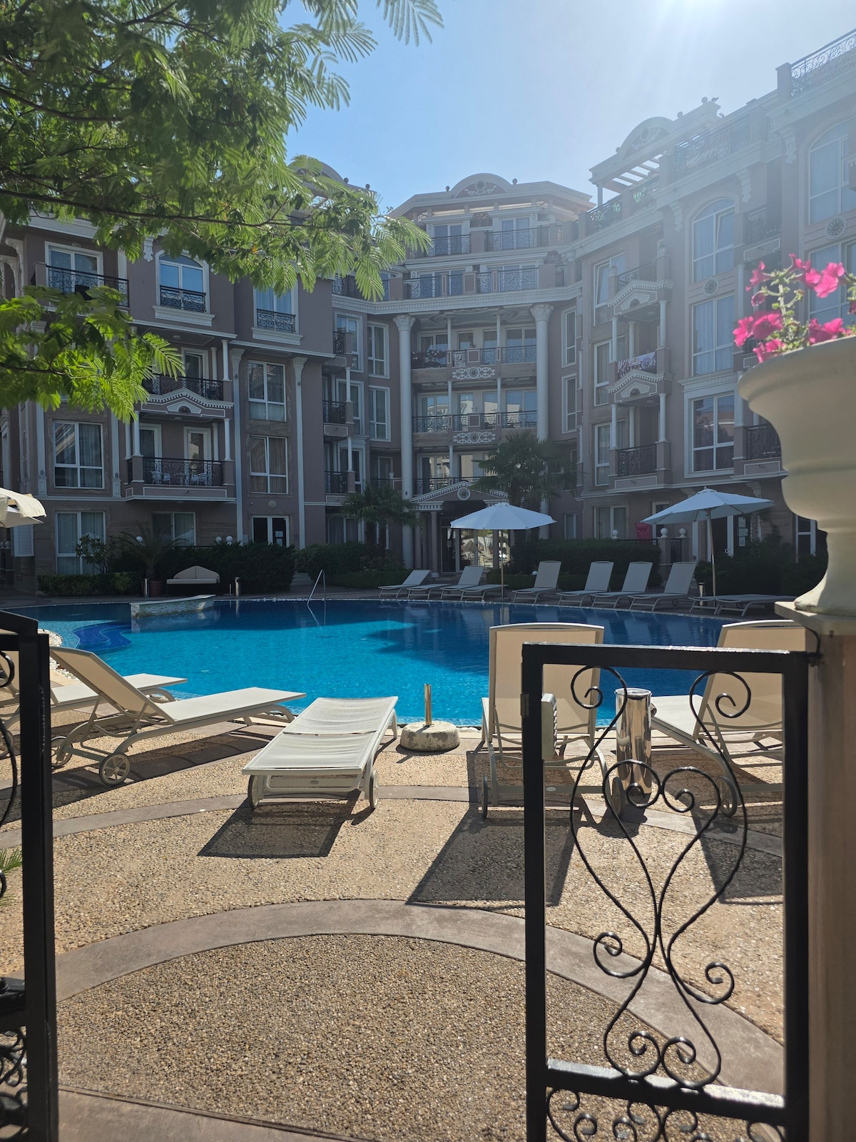 “Casa de deleite” Para tu comodidad, combinada con la tranquilidad, el exotismo y la calidez del encanto del hogar, con un soplo de mar y playa, frescura natural por las mañanas con una taza de café aromático y la dinámica de las hermosas noches de verano compartidas con seres queridos y amigos.🌴🌞🌺 Bienvenido a Varna, nuestra capital marítima, Chaika Resort, Kabakum, Argish Palace, ¡un complejo exótico cerrado con seguridad las 24 horas y un espacio de estacionamiento incluido! Playa Kabakum a 7-10 minutos a pie, 600 m. ¡Hay restaurantes, tiendas de comestibles, piscinas cerca!