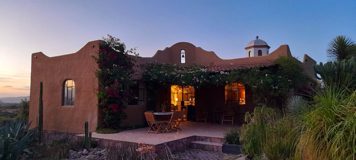 Habitación privada en encantadora casa de campo Villa ZenZontle estilo Santa Fe convenientemente ubicada en zona rural a solo 10 minutos del centro de SMA. En zona de aguas termales y cerca de Mayan Baths SPA alberca subterranea para adultos, y parque acuático XOTE para familias. Ideal para pasar noches tranquilas contemplando las estrellas y luego despertarse con un delicioso desayuno. La finca es auto-sustentable. PREGUNTE POR NUESTRAS TARIFAS Y REGLAS PET-FRIENDLY ANTES DE RESERVAR.