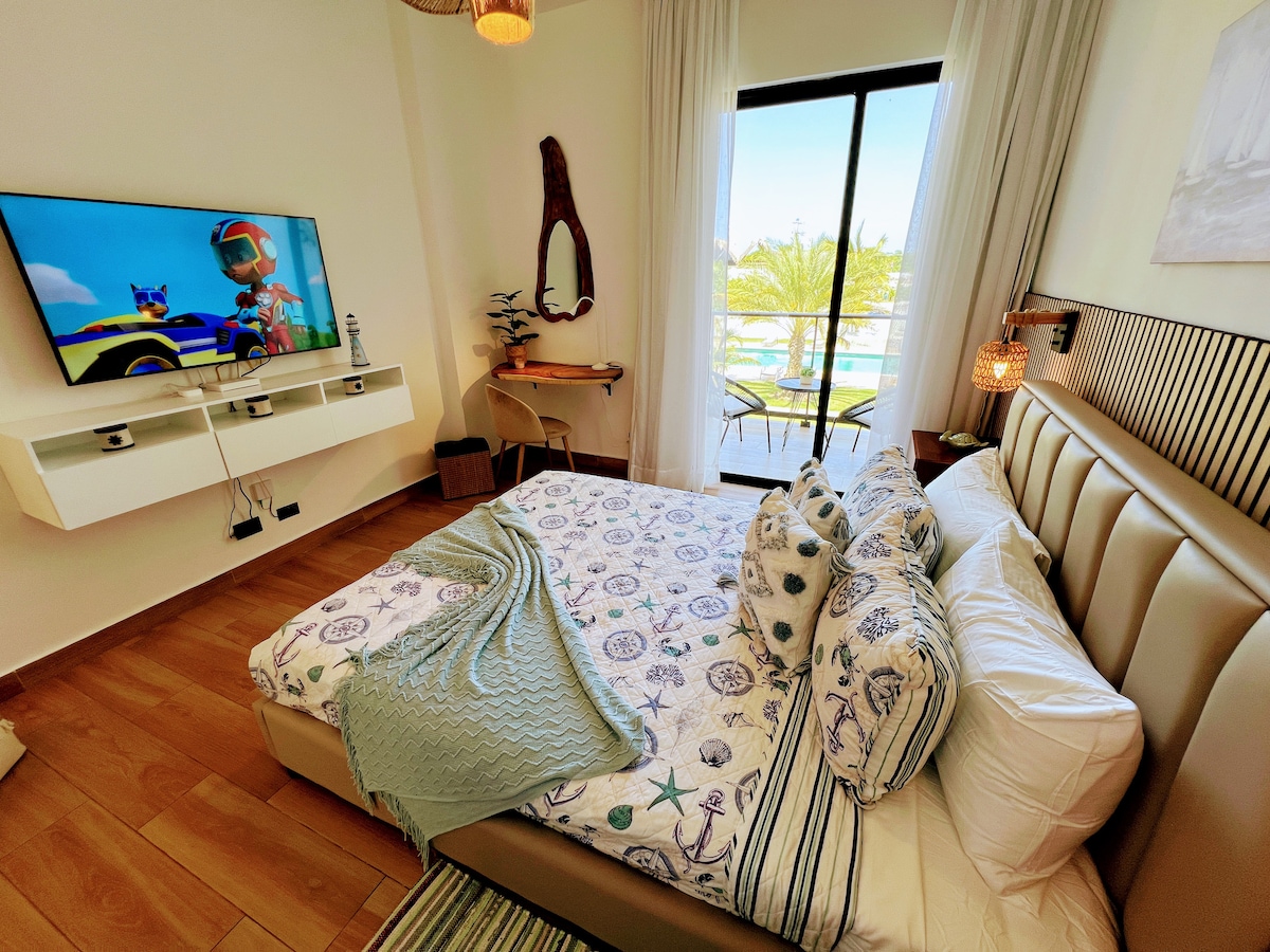 Beautiful one-bedroom apartment, designed to comfortably accommodate up to four guests, featuring a king-size bed, plus an inflatable mattress. It features carefully chosen decoration to create a welcoming atmosphere. It includes a comfortable bedroom, a functional living area, a fully equipped kitchen, and a full bathroom, as well as air conditioning and Wi-Fi. Perfect for couples, or travelers seeking comfort and a convenient location close to Downtown Punta Cana and beautiful beaches.